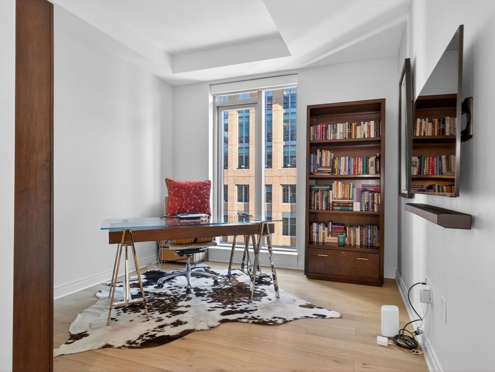 Perched on the 20th floor of Echelon Seaport, Residence 2008 offers a rare opportunity to own one of the building’s only south-facing homes currently available with an expansive ~450-square-foot private terrace — the largest of its kind on the market. This light-filled residence features wide-plank oak flooring and a chef’s kitchen appointed with an oversized Caesarstone island and fully integrated Thermador appliances. Meticulously maintained and lightly lived in, the home is enhanced by extensive custom closet systems and thoughtfully selected designer upgrades. The private terrace, complete with a dedicated gas line, provides exceptional indoor-outdoor living rarely found in Boston high-rise residences. Echelon’s full-service lifestyle amenities, including 24/7 concierge and white-glove services, valet parking, three resort-style pools, a state-of-the-art fitness and wellness center, private dining and social lounges, a golf simulator, and a fully equipped office center.