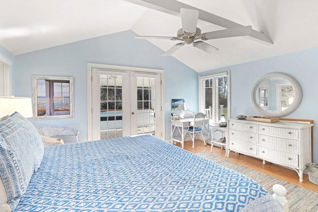 Downtown Vineyard Haven with Harbor Views. Positioned between the energy of Main Street and the quiet prestige of West Chop, this location delivers a rare balance of downtown access, privacy, and harbor frontage. Built in 2015, the three-bedroom, two-bath modern ranch is designed for easy first-floor living with expansive water views. Wide, harbor-facing windows showcase the meadow and water beyond. The interior feels open, calm, and intentional, with spaces that flow naturally toward the outdoors and keep the focus where it belongs. Outside, the landscape opens gently toward the water. A private beach path sits immediately adjacent to the Vineyard Haven Yacht Club, offering sailing, tennis, dock access, and a café just steps away, an uncommon amenity pairing in such a peaceful, natural setting. Whether enjoyed as a personal escape or leveraged as an income-producing property, the home’s strong rental history reflects its wide appeal.