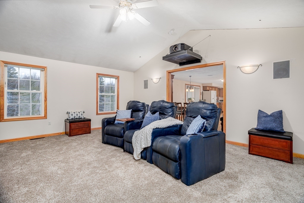 Welcome to where space & opportunity meet! This impressive 2,532 sq ft Colonial features Central AC & gleaming hardwood floors. The heart of the home is a stunning vaulted family room with cathedral ceilings—a sun-drenched retreat for movies & relaxing. The fully applianced kitchen with a spacious dining area is perfect for hosting, while the den features a cozy fireplace & integrated speakers throughout for entertainment. The Primary Suite is a true sanctuary with an oversized bedroom & private bath. Two add'l bedrooms + a private 1st-floor office offer an ideal layout for remote work. Outdoor living is easy with an in-ground sprinkler system. The standout: a full walkout basement with rare 9-foot ceilings & separate entrance—perfect for a future in-law suite or home-based business. Prime commuter location near Rt 2 & 140. Ready for your vision!