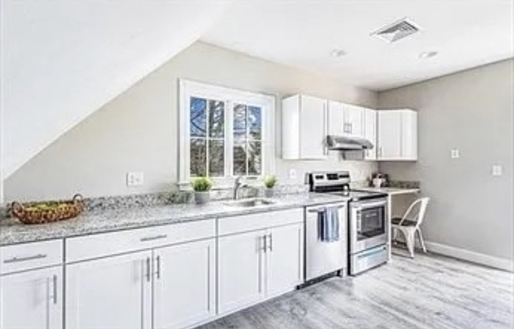 Bright and beautifully updated 2-bedroom, 1-bath apartment available for immediate occupancy! This sun-filled unit features a modern kitchen with white cabinetry, stainless steel appliances, and updated finishes. Spacious rooms offer great natural light and updated flooring throughout, creating a clean, contemporary feel.Enjoy outdoor living with access to a large private deck — perfect for relaxing or entertaining. Conveniently located near local shops, restaurants, and major routes.