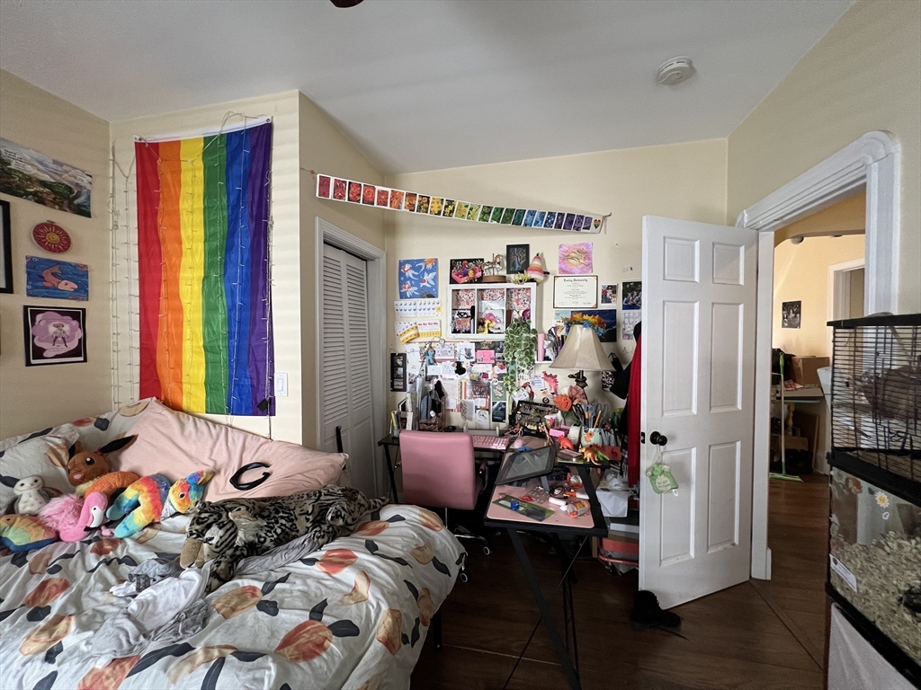 Davis Square. Closest train = Davis Square (Red Line T). 3 bed/1 bath (second floor). Modern eat-in-kitchen. Separate living room. Hardwood floors. Great sized bedrooms. Private rear deck. Shared front deck. Shared rear patio. Coin-op laundry machines in basement. Street parking with City permit.