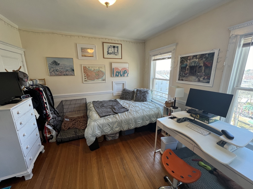 Porter Square. Closest train = Porter Square (Red Line T). 4 bed/2 bath (third floor unit). All renovations are new from 2023. Separate living room/kitchen. White-granite countertops and cabinets. Stainless-steel appliances. Central ac. In-unit laundry. Hardwood floors. Modern/tiled bathrooms. Shared patio in rear of property.