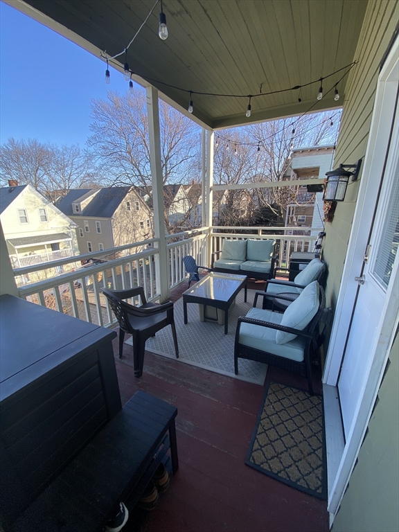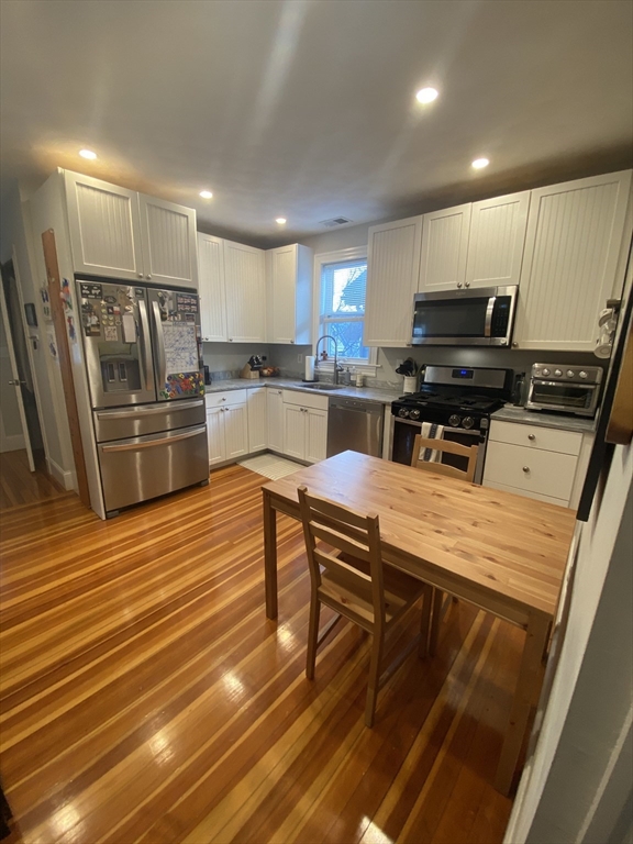 Davis Square. Closest trains = Davis Square/Porter Square (Red Line T). · 4 bed/2 bath (third floor). · Eat-in-kitchen with stainless-steel appliances, granite counters, modern cabinets. · In-unit laundry. · Modern tiled bathrooms. · Hardwood floors throughout. · Central heating and AC w/ NEST thermostat. · Private back deck. · Enclosed front porch. · Yard. · Street parking with City permit. · Off-street parking available to rent.