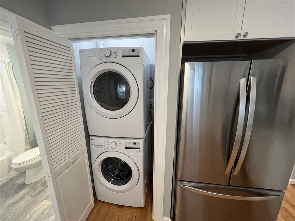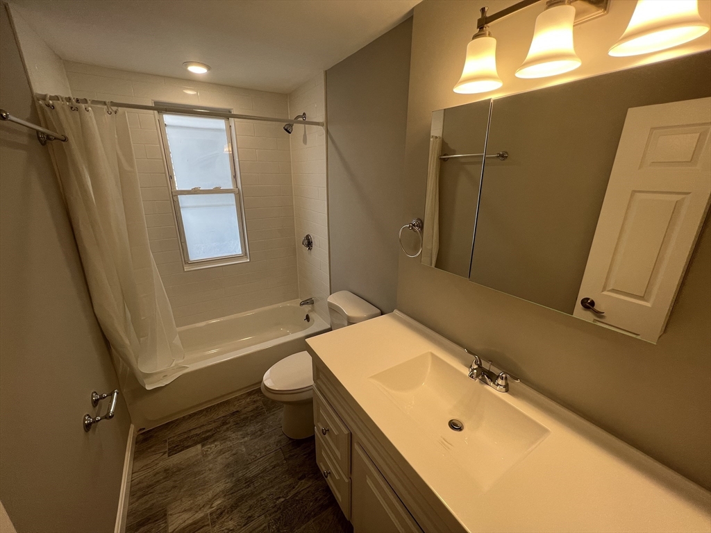 Porter Square. Closest train = Porter Square (Red Line T). 4+ bed/2 bath (first floor unit + bonus finished storage in lower level). Separate living room. Gorgeous new white-granite counters. New cabinets. New stainless-steel appliances. Hardwood floors. Modern/tiled bathrooms. Central heat and AC (with Wi-Fi enabled NEST thermostat). In-unit laundry. Street parking with City permit. Off-street parking available for rent.