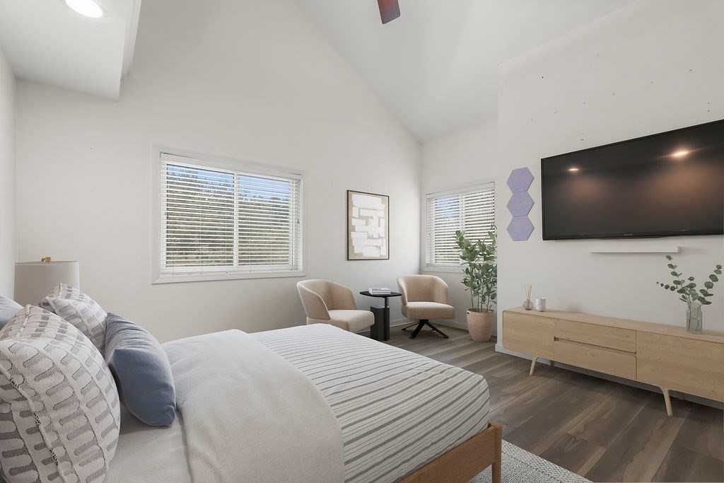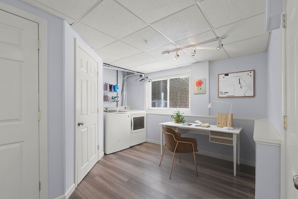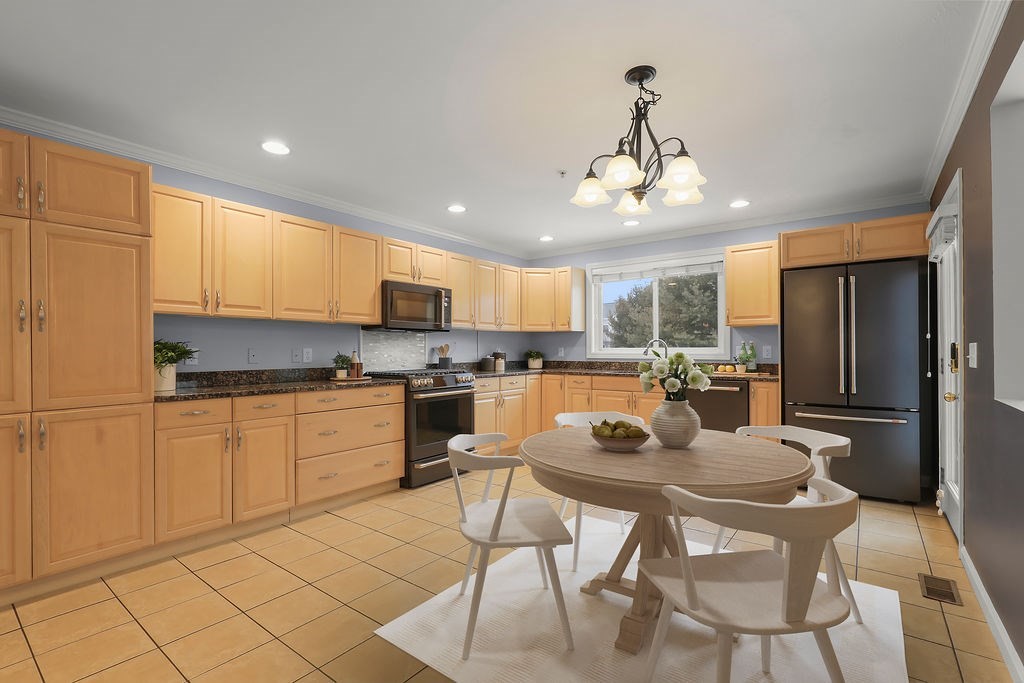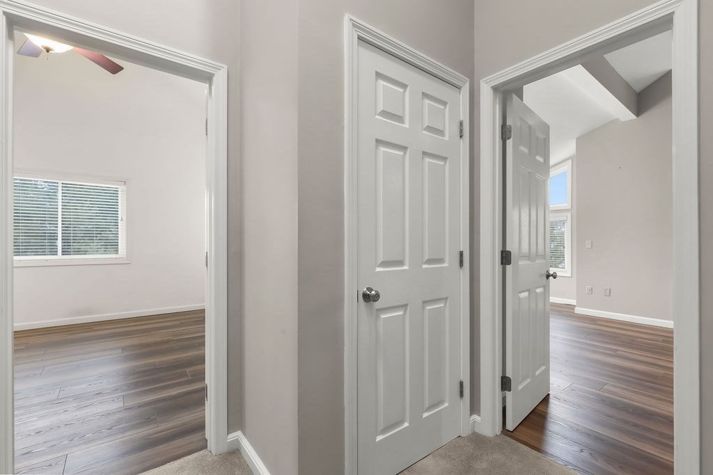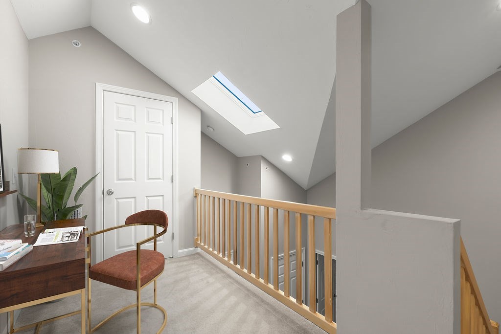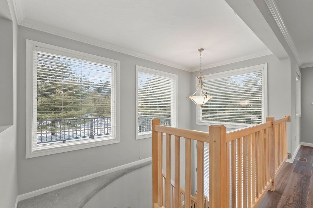 This corner townhouse-style condo offers an open floor plan filled with natural light and a spacious feel throughout. The oversized kitchen is a standout with abundant cabinet space and room for a table or island, ideal for everyday living and entertaining. It flows seamlessly into the dining and living areas, where a cozy fireplace creates a warm, inviting atmosphere. LVP flooring runs throughout the living areas and bedrooms, creating a cohesive look. Expansive windows enhance the bright interior. Upstairs, cathedral ceilings add volume and charm. The primary suite features a stunning look-through fireplace connecting the bedroom and en-suite bath. A cozy loft makes a perfect office or reading nook. The lower level offers a two-car tandem garage and a utility/laundry room with space for a workout area or office. Enjoy a prime location near shops, restaurants, the train, I-495, plus peaceful trails and ponds right outside your door! Welcome home.
