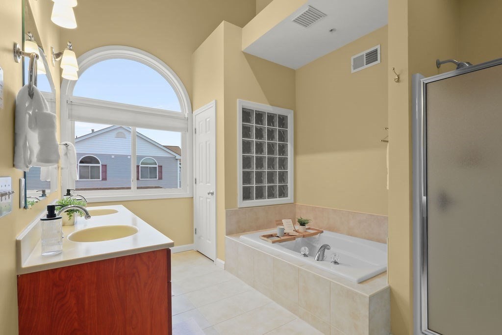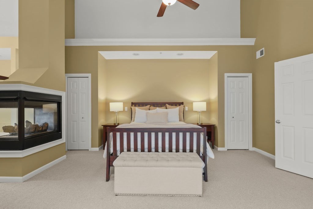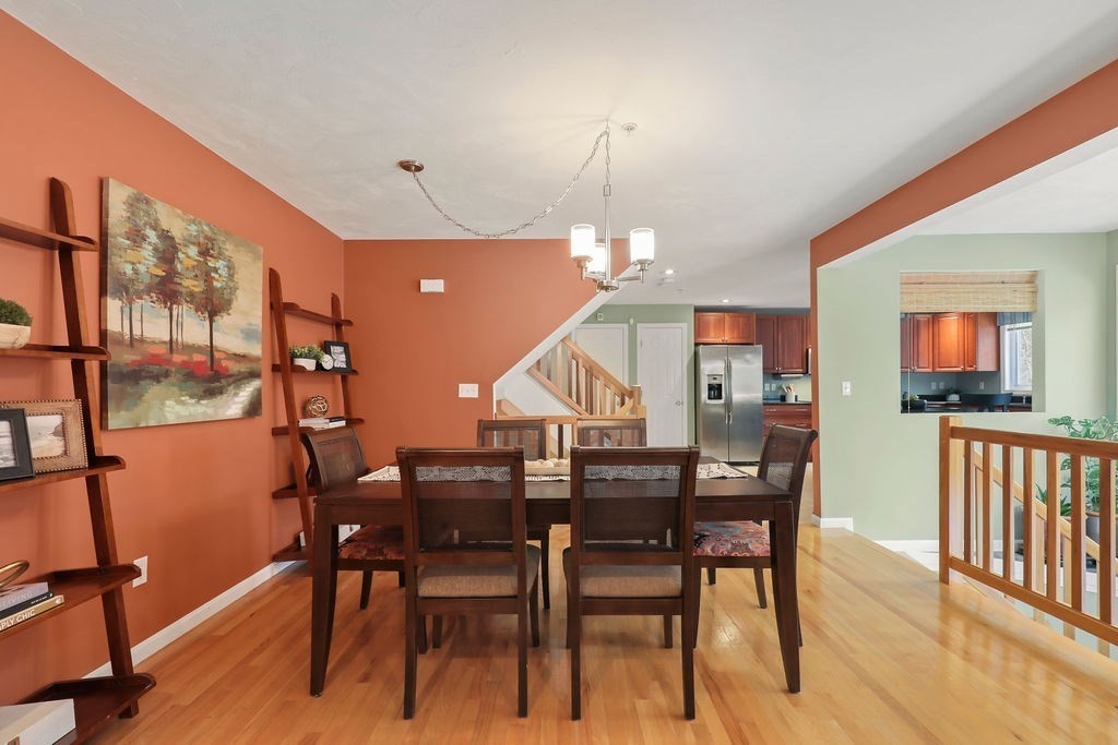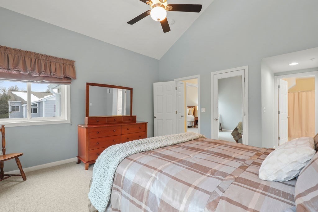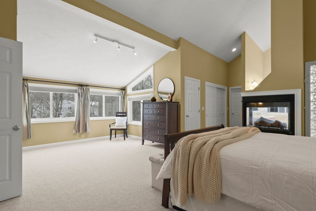 This beautifully maintained Bay Colony townhouse condo offers the perfect blend of space, privacy, and convenience. This corner unit is set in a peaceful setting with scenic wooded views. The main level features an open floor plan w/hardwood floors throughout the living & dining areas, ideal for everyday living & entertaining. The spacious kitchen offers ample cherry cabinets, granite tops & ss appliances. Upstairs, the primary suite boasts cathedral ceilings, multiple closets, and a striking look-through fireplace connecting the bedroom & bath. The primary bath offers cathedral ceilings, jacuzzi tub & shower. The 2nd bedroom also features cathedral ceilings & an ensuite bath. The third-floor loft adds versatile bonus space for an office or reading nook. The lower level includes a 2-car tandem garage, laundry & a newly finished room. Set on a short dead-end street in a great neighborhood for walking, close to commuter rail & I-495.