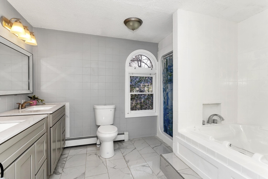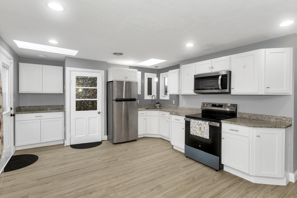 Renovated in 2021 and move-in ready, this spacious Colonial offers nearly 2,000 sq ft with 4 bedrooms and 2 full baths. The bright living room flows into an updated kitchen with granite countertops, stainless steel appliances, skylights, and deck access. The first floor includes a full bath, bedroom, and cathedral-ceiling bonus room with its own electric heat; ideal as a fourth bedroom or flex space. Upstairs features 2 additional bedrooms, including a spacious primary with walk-in closet, and a full bath with double vanity and Jacuzzi tub. New heating system (2026), washer/dryer (2025) with warranty, fenced yard, and off-street parking. Enjoy quick access to shopping and daily essentials while tucked away in a quiet, peaceful setting. Nearly 2,000 sq ft and 4 true bedrooms at this price point. Schedule your showing today and come to the Open House on Saturday @ 11-12:30pm!