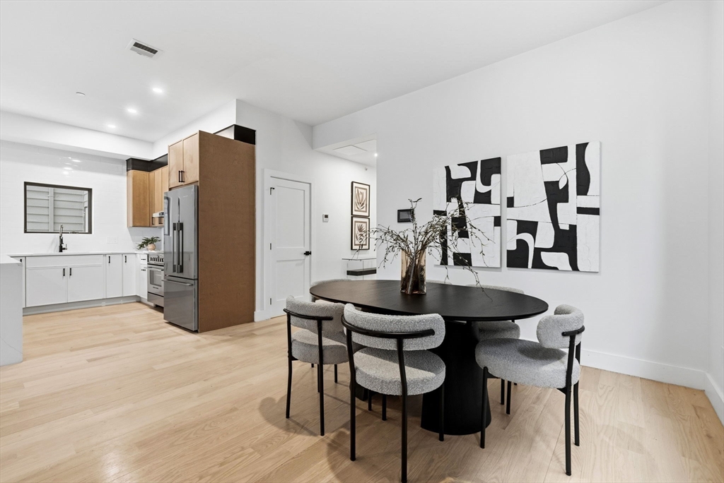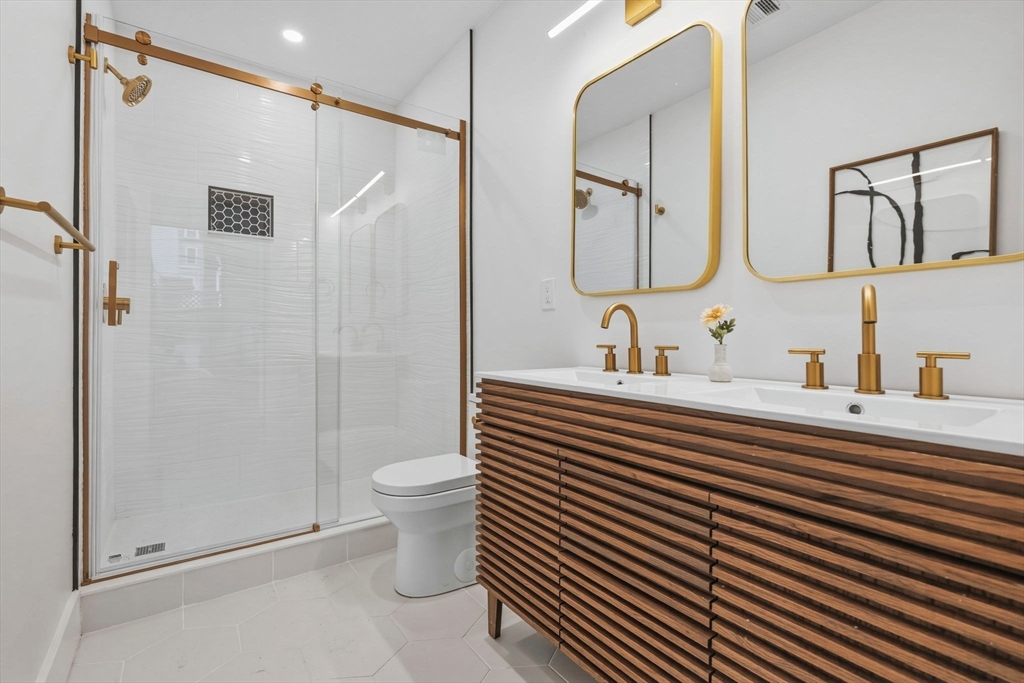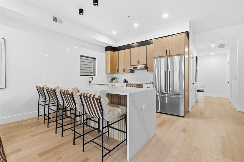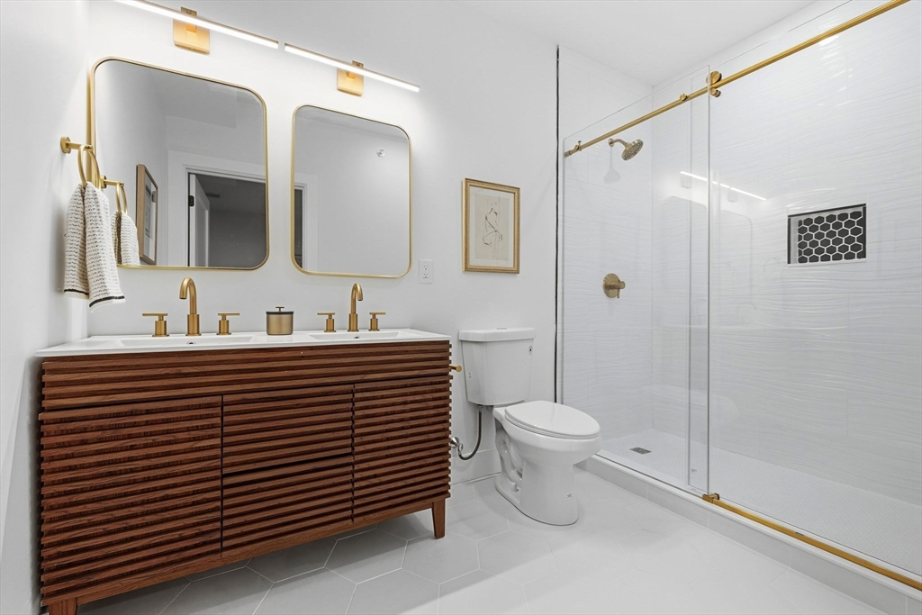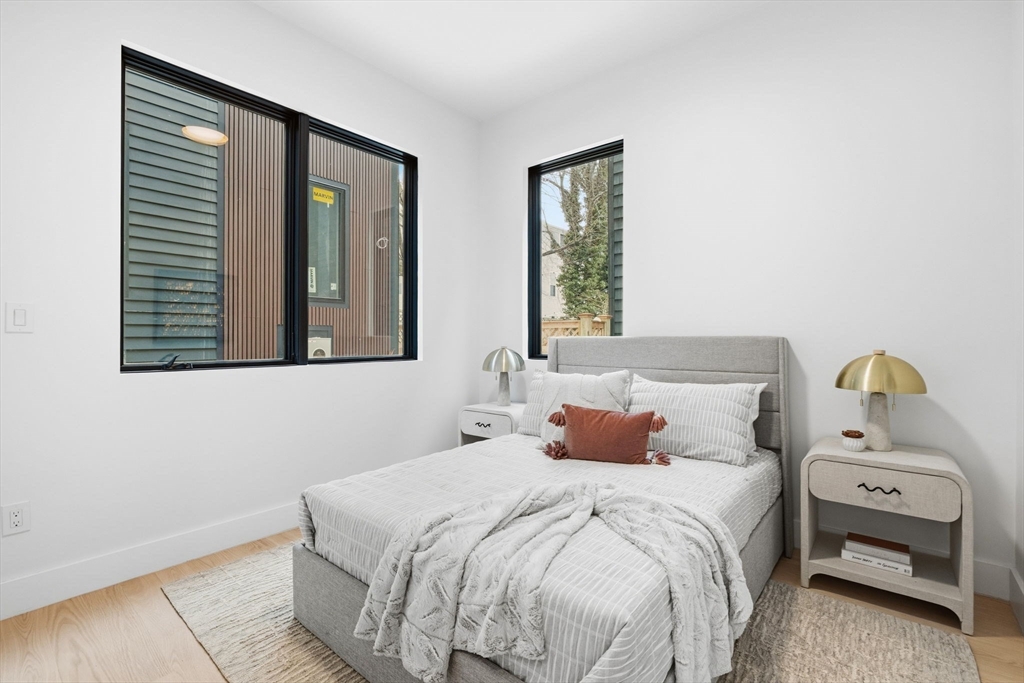 Your chance to own a thoughtfully designed new construction home in one of Somerville’s most connected neighborhoods. This 2,382 sq ft bi-level unit offers 3 beds+ & 3.5 baths designed for comfort & everyday living. The main level showcases an open concept layout anchored with 10' ceiling, a spacious living & dining area & a stunning kitchen with Fisher & Paykel appliances, quartz countertops & a mix of warm wood & crisp white cabinetry. Floor-to-ceiling Marvin windows fill the space with natural light & extend to a private deck, ideal for relaxing or entertaining. A private primary suite is tucked just off the main living area with a luxurious bath and walk-in closet, while a bright guest bedroom and powder complete this floor. Downstairs, a spacious family room opens directly to the patio for seamless indoor-outdoor living, along with a junior suite and additional office. Set within a boutique building just moments from Davis Square, the Green Line Extension & the Community Path.