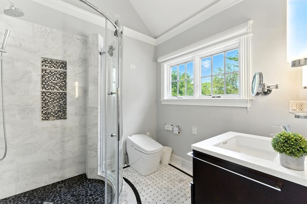 Exquisite cape colonial estate in Weston’s golf club area. Perfect location on 2.85 acres in Weston's top neighborhood. Two floor grand foyer opens to the coffered great room, drenched in light from the floor to ceiling windows and the patio doors, which open out to the massive deck overlooking the large, flat, private back yard, while the grand fireplace and custom millwork impress. Large chef’s kitchen features huge central island, professional appliances, and custom cabinetry. The adjoining informal dining features skylights and wall to wall windows overlooking the back yard. The first also features the grand formal dining room with cathedral ceiling and a large open family room with fireplace and sitting area. Bedrooms maximize flexibility, including two amazing master suite options on the 1st & 2nd floor, while the 3rd floor has the in-law suite as well as a game room. The lower level boasts a theater, wine cellar, and gym. A+ location within 18 minutes to Boston.