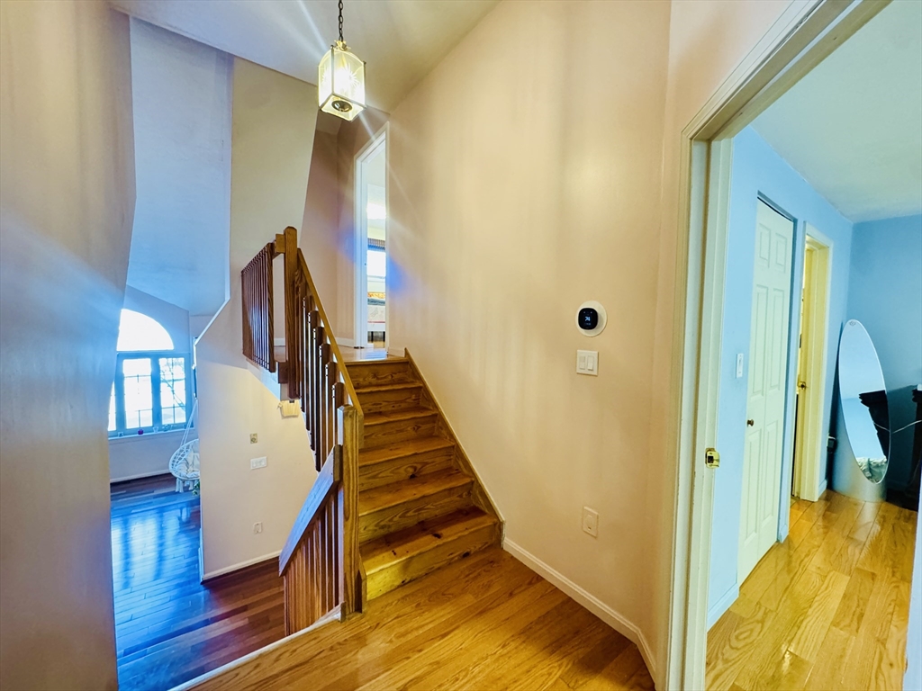 Easy access to major highway, route 9, train station, shopping and well-known dean park. A Desirable Maplewood Town House, freshly painted 3 BR, Loft, finish BSMT, 2.5 Baths Townhouse, Open 2 story family room, throughout hardwood floor in living room, Bedroom, Loft & dining area. Fully updated kitchen has a gas range, with ample cabinet space, granite countertop, stainless steel appliances, tile backsplash and tile flooring in the Kitchen. Master Bedroom with attached Bath and walk-in closet, spacious loft area that could be used as an office room/kids Library area etc. Gas heat with Central AC on dual heat pump modes. Complex features a Tennis court, Swimming pool and a playground area. This energy efficient Middle Unit offers a large walk-out basement with a customized Gazibo, plenty of storage space. No smoking and no pets allowed. All applicant must go through credit, criminal and background searches and fill rental application.