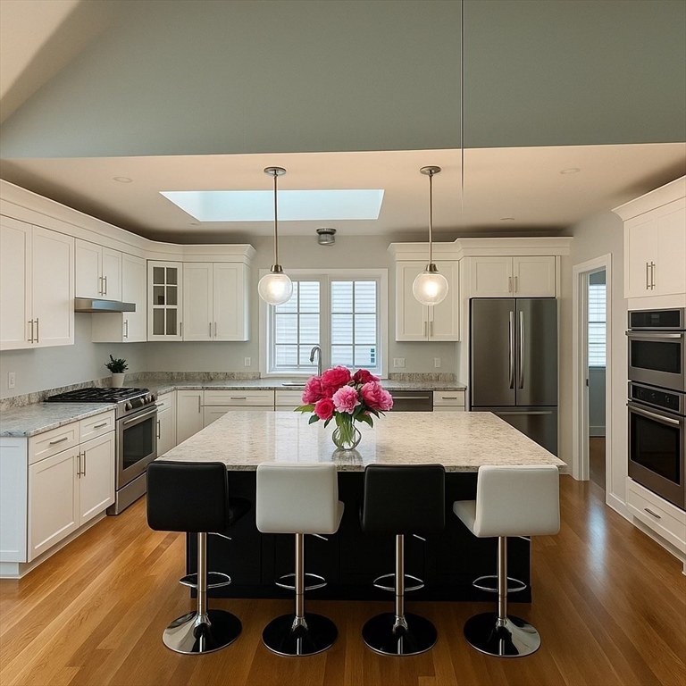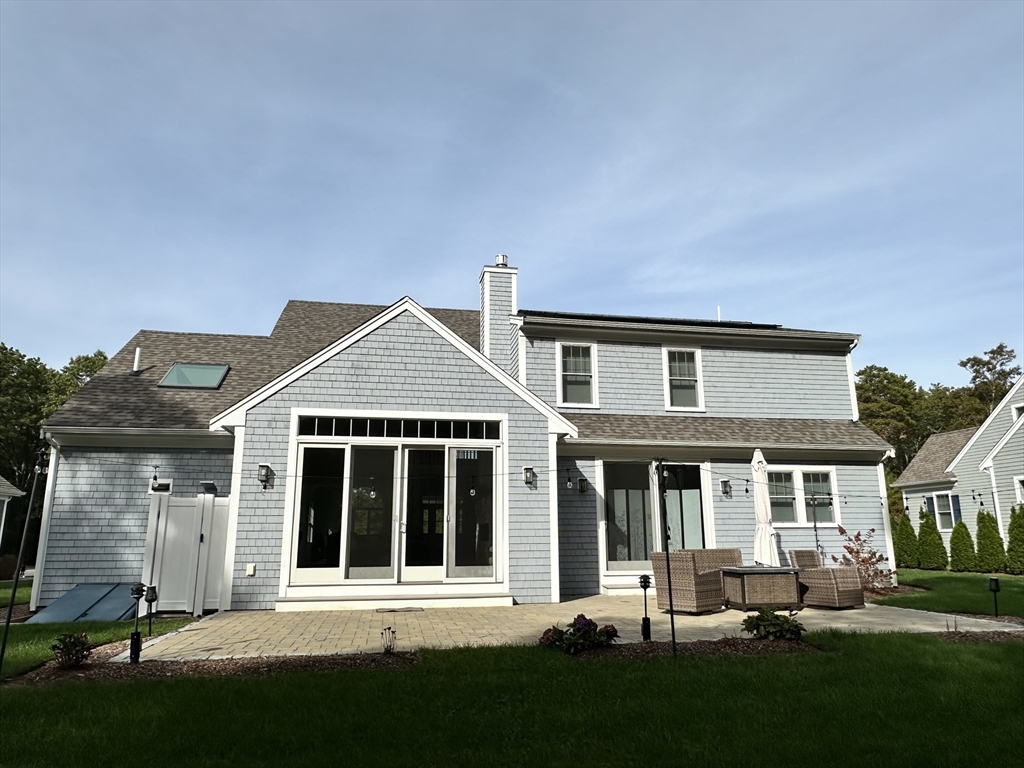 Step inside this stunning 2024 coastal-contemporary build, where light-flooded interiors and open-concept design redefine modern living. Oversized windows, skylights, and glass sliders invite a glow of natural warmth into the heart of the home, centered around a gourmet kitchen featuring an 8-foot social island, premium appliances, and massive shelved pantry. Thoughtfully designed for effortless first floor living, the main level hosts an expansive open-concept family, sitting and dining area, a serene primary suite and laundry, while a graceful staircase leads to a versatile loft/office and two spacious ensuite bedrooms above. Storage is prioritized with abundant walk-in closets and an oversized two-car garage. Outside, your private oasis awaits with two elegant paver patios that directly abut peaceful conservation land. Situated just moments from Mashpee Commons, New Seabury, and iconic town beaches, this residence offers a fresh, move-in-ready escape in a premier Cape Cod location.