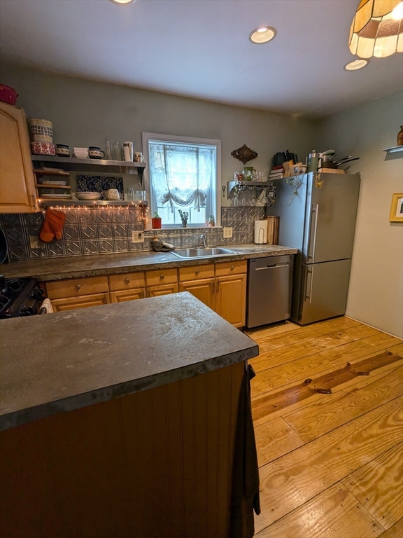 Experience the perfect blend of coastal serenity and modern convenience in this stunning 3-bedroom, 2-bath Salem home, available either furnished or unfurnished. Golden sunsets serve as your daily backdrop, visible right from your windows. The main level radiates character with warm pine floors and a sleek, modern kitchen featuring chic concrete countertops. A flexible third bedroom with a cozy fireplace makes for an ideal home office or guest space. Retreat to the spacious primary suite, boasting soaring vaulted ceilings, a large walk-in closet, laundry, and a private en-suite bath. Outdoor living is a dream with a private yard and a partially covered deck perfect for grilling and relaxing. This prime location is just minutes from downtown Salem’s vibrant shops, dining, the waterfront, Salem State, and the commuter rail to Boston. Includes two-car parking. One well-behaved, housebroken dog is welcome - Sorry, no cats. 6 to 12 month lease. Available May 1st.