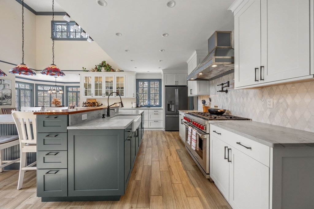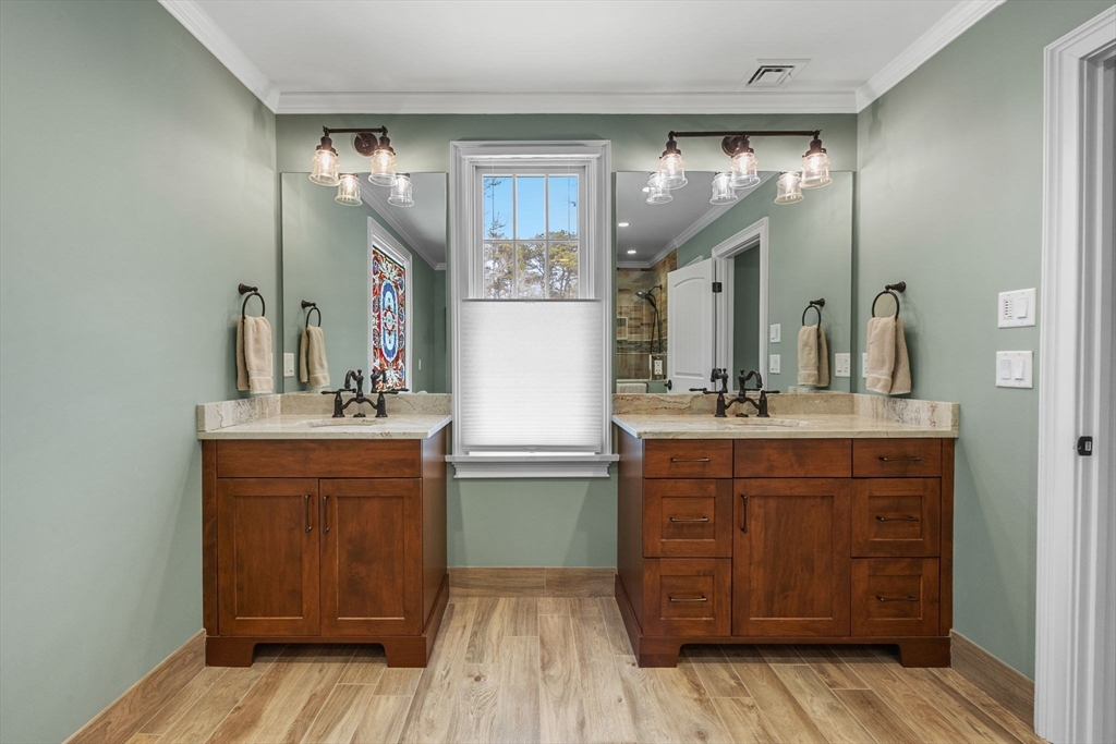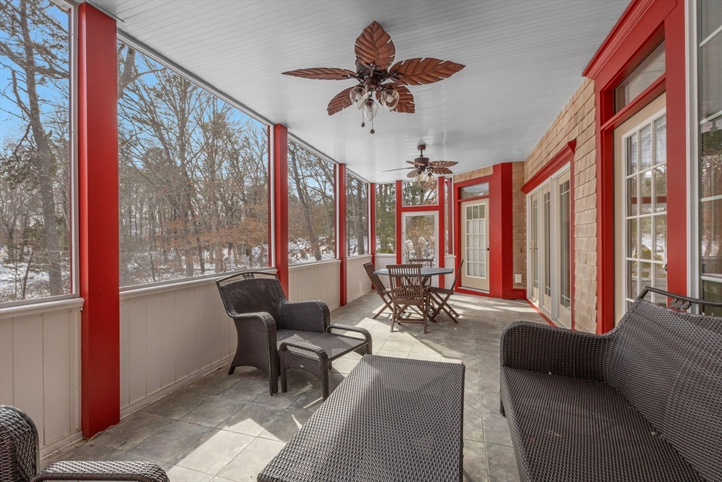 Exceptional waterfront home in Mashpee with private deeded beach rights and a history as a B&B. Thoughtfully maintained, this property blends coastal charm with modern efficiencies and energy savings including owned solar panels, new heat pumps, and updated radiant flooring. Extensive 2022 renovations include the newly tiled main floor, an updated gourmet kitchen , quartzite counters, stainless steel appliances, a primary bedroom with gas fireplace and en-suite bath, sitting area, laundry and large mudroom. New hardwood flooring, a second newly refined, large bedroom suite with its own wood fireplace, a large living area and office that accesses a private porch is located on the second floor. On the lower level, two additional bedrooms, bath, large storage area and family room open to a large screened porch with access to a boardwalk to the beach area and fire pit. This turn-key, furnished home provides an opportunity to enjoy waterfront living that is close to Mashpee Commons.