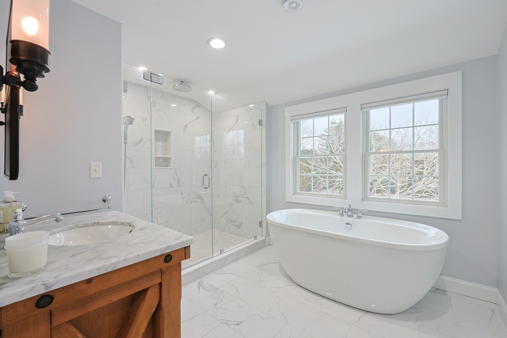 Welcome to 62 Tucker Lane, a beautifully updated Colonial in Dartmouth set on a .72 acre-lot, offering space, privacy, and a layout ideal for modern living. This home features approximately 3,600 sq ft with 5 bedrooms and 3.5 baths, filled with natural light and thoughtful updates throughout. The kitchen is designed for both cooking and entertaining, featuring a Wolf range, Sub-Zero refrigerator, custom cabinetry, and a large center island, flowing seamlessly into inviting living and dining areas. Hardwood flooring runs throughout the main level, while generous room sizes provide flexibility and comfort. The primary suite offers a spa-like bath with soaking tub and glass-enclosed shower. A partially finished basement adds versatile space for a home gym, playroom, or media area. Enjoy the expansive backyard and deck, perfect for gatherings or quiet evenings. Recent improvements include an addition and remodel, energy-efficient systems, new driveway, windows, roof, and irrigation system.