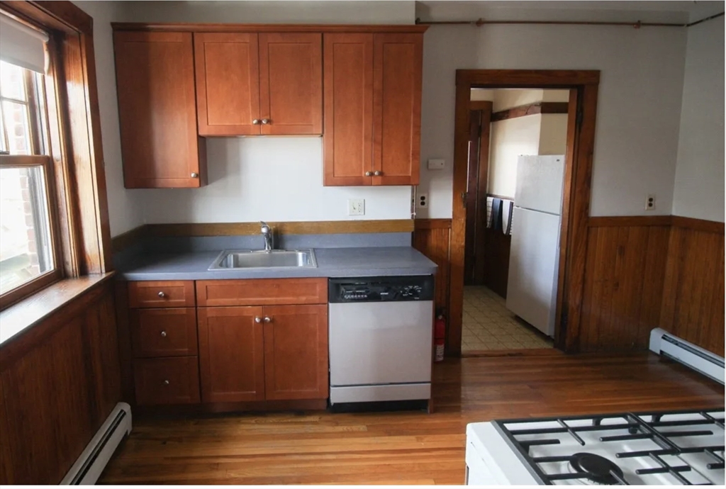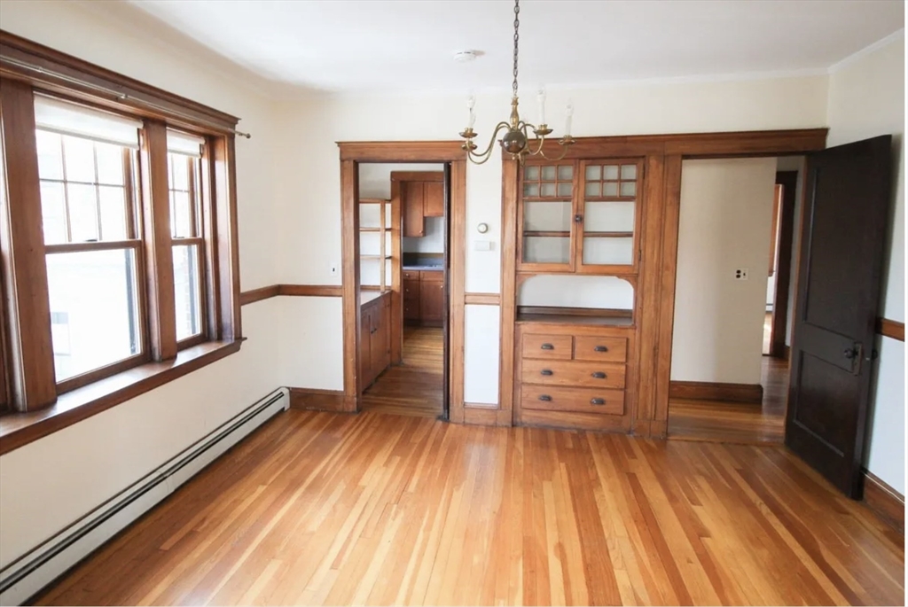 Rarely available!!! Spacious and sunny two bedroom, one bathroom unit set in the heart of Brookline Village overlooking Linden Park. Beautifully maintained, this unit features a front-facing living room, eat-in kitchen with plenty of pantry space, formal dining room with built-in china cabinet, high ceilings, and hardwood floors throughout. In unit laundry. 1 rental parking. available near by for $200 a month.Fabulous location with easy access to the Longwood Medical Area, downtown Boston, local restaurants, coffee shops, and grocery stores. Minutes to the D (Green line). Laundry in the building.
