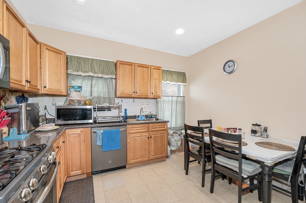 Exceptional oversized 2 family home in the highly sought-after Field Corners neighborhood. Boasting with 13 rooms, 8 bedrooms & 3 full baths, this property presents an outstanding investment opportunity w/ excellent versatility & potential to convert to a 3-family (buyer to perform due diligence). Unit 1 offers 3 spacious bedrooms, a large LR, and an eat-in kitchen with custom cabinetry, dishwasher and laundry hookup. The full bath includes a one-piece tub. Unit 2 spans two levels. The main level features 3 bedrooms, an eat-in kitchen w/ washer/dryer hookups, and a full bath w/ tile surround. The upper level includes two additional bedrooms, a large full bath w/ space for an additional washer/dryer, and an added living area complete w/ sink and refrigerator, ideal for teens, guests, or extended family. Both units boast high ceilings, generously sized rooms, hardwood floors, and ornate woodwork. Within minutes of Four Corners/Geneva Station and Fields Corner this property is idea.