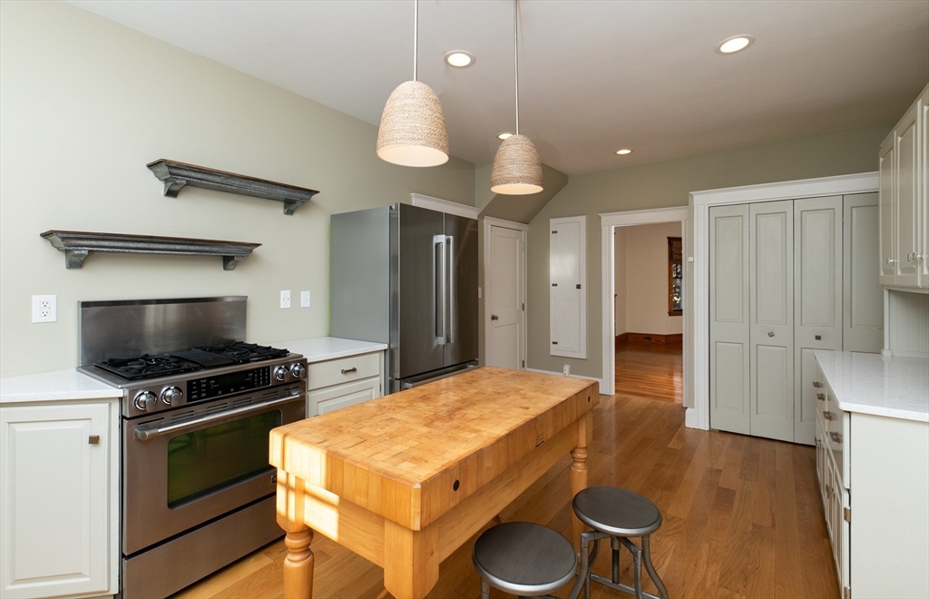 Preserved 1928 Arts & Crafts home, positioned on a corner lot, in a neighborhood setting just minutes from downtown Ipswich. This property offers easy access to the commuter rail, Crane and Pavilion Beaches, Appleton Farms and scenic trails. The interior maintains its original character through high ceilings, period details, hardwood floors and built-ins. A generous, updated kitchen serves as a central hub, with stainless steel appliances and gas cooking, while sitting adjacent to a sunroom entry. For those working from home, the 1st floor includes a private office with half-bath, also suitable as a den or library. Upstairs, 3 bedrooms are highlighted by a primary with vaulted ceilings and full bath. Modern comfort is integrated with mini-split A/C on both levels and most windows have been replaced. Outside, the backyard provides a relaxing retreat with a newer detached 2-bay garage. Rare find in move-in condition within an authentic North Shore community.
