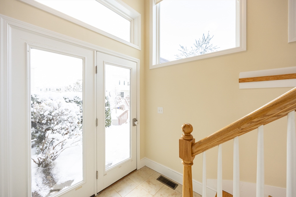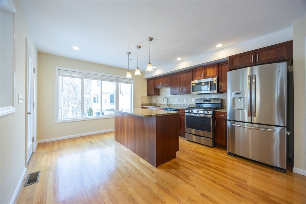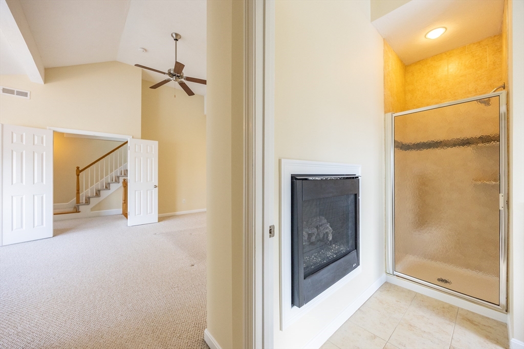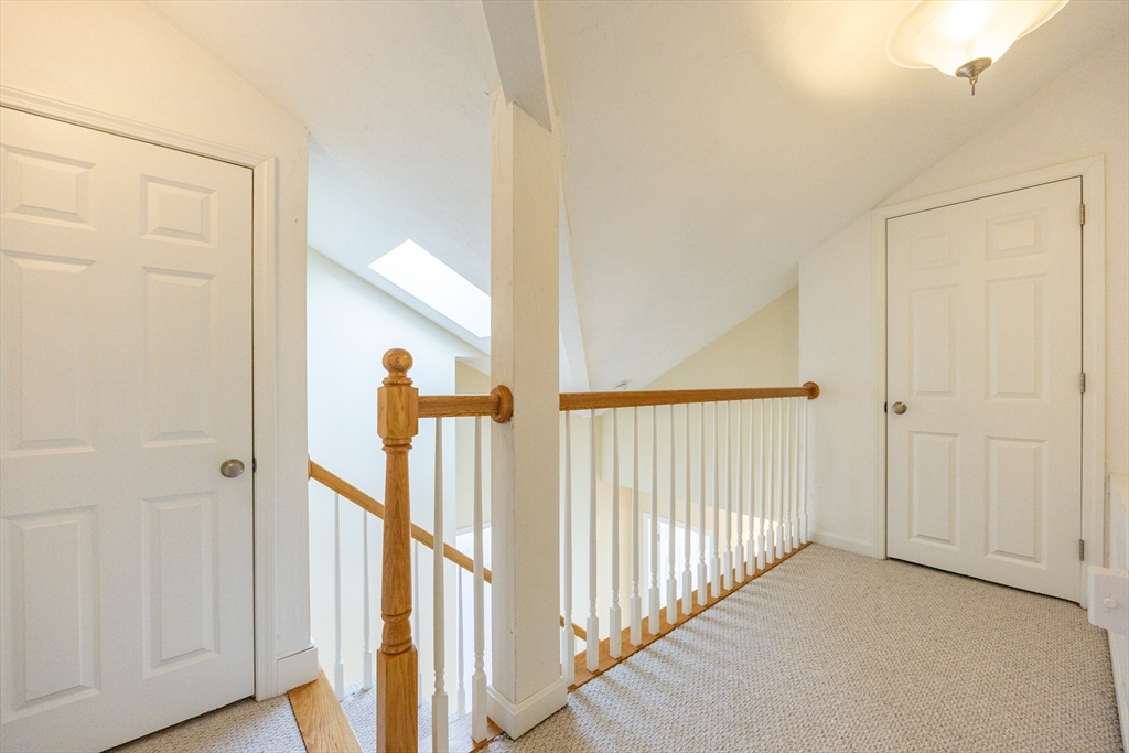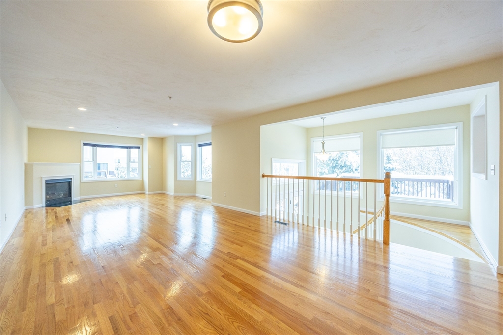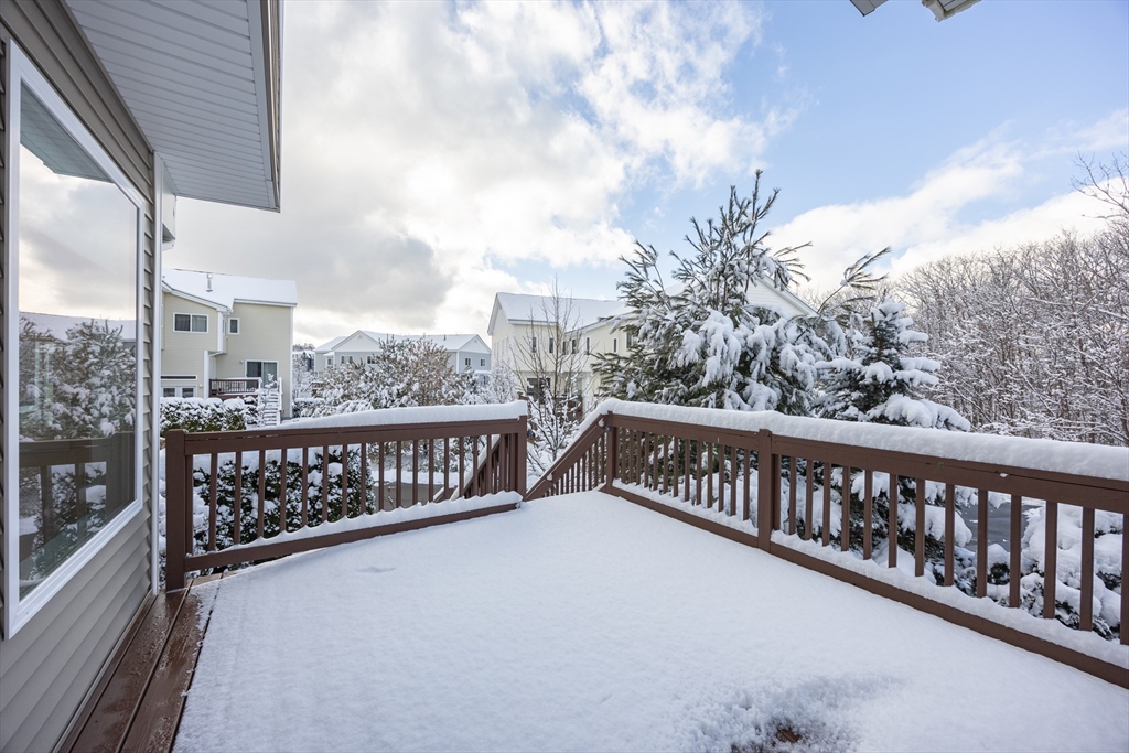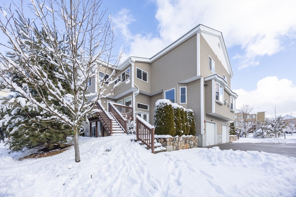 Experience sun-drenched elegance in Ashland’s Village of the Americas. As one of the final units built in the community, this meticulously upgraded Galleria-style townhome begins with a striking two-story glass foyer and curved staircase. The interior is bathed in natural light from south and west-facing windows, illuminating new gleaming hardwood floors.The chef’s kitchen features a 6’ granite island, stainless steel appliances, and upgraded cabinetry, flowing into an expansive living area with a gas fireplace. Retreat to the primary suite, a private sanctuary with cathedral ceilings, a second fireplace, and a walk-in closet with custom Elfa organization. Both bedrooms include en-suite baths, featuring a premium tiled shower and double vanity in master bath. Modern conveniences include living-level laundry, a loft for extra storage, and a finished walk-out basement perfect for a home office or gym. Step onto your private deck or enjoy the community’s vibrant play area and gazebo.