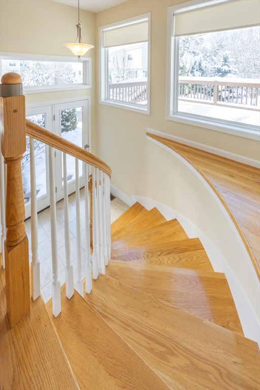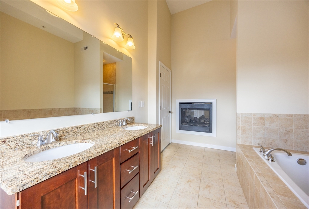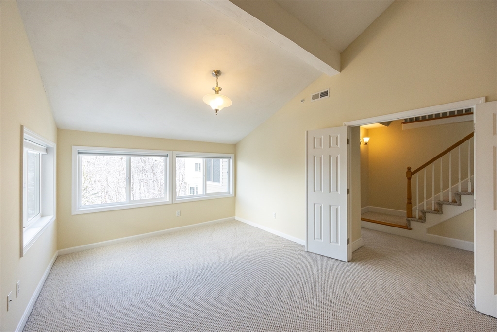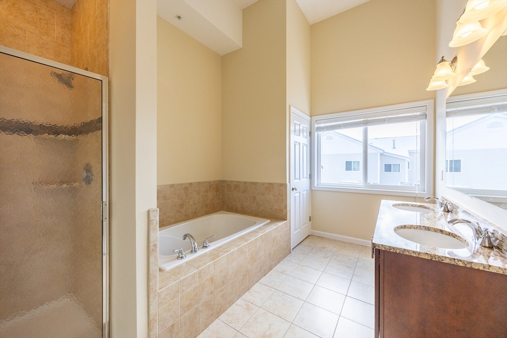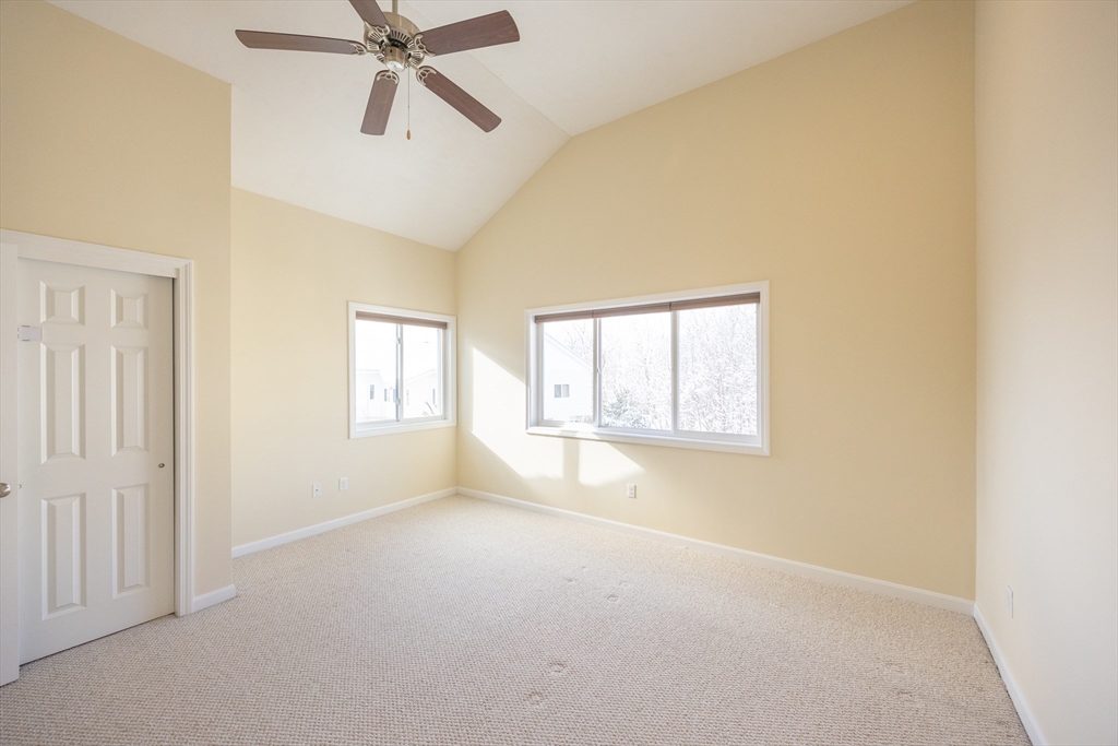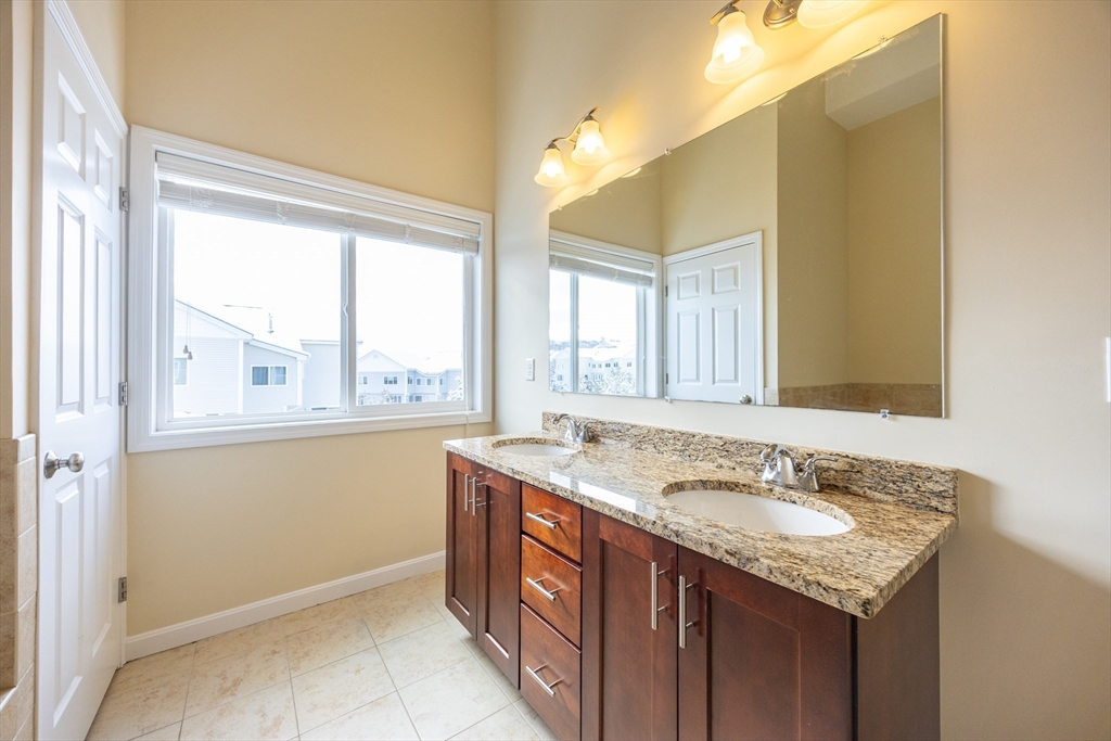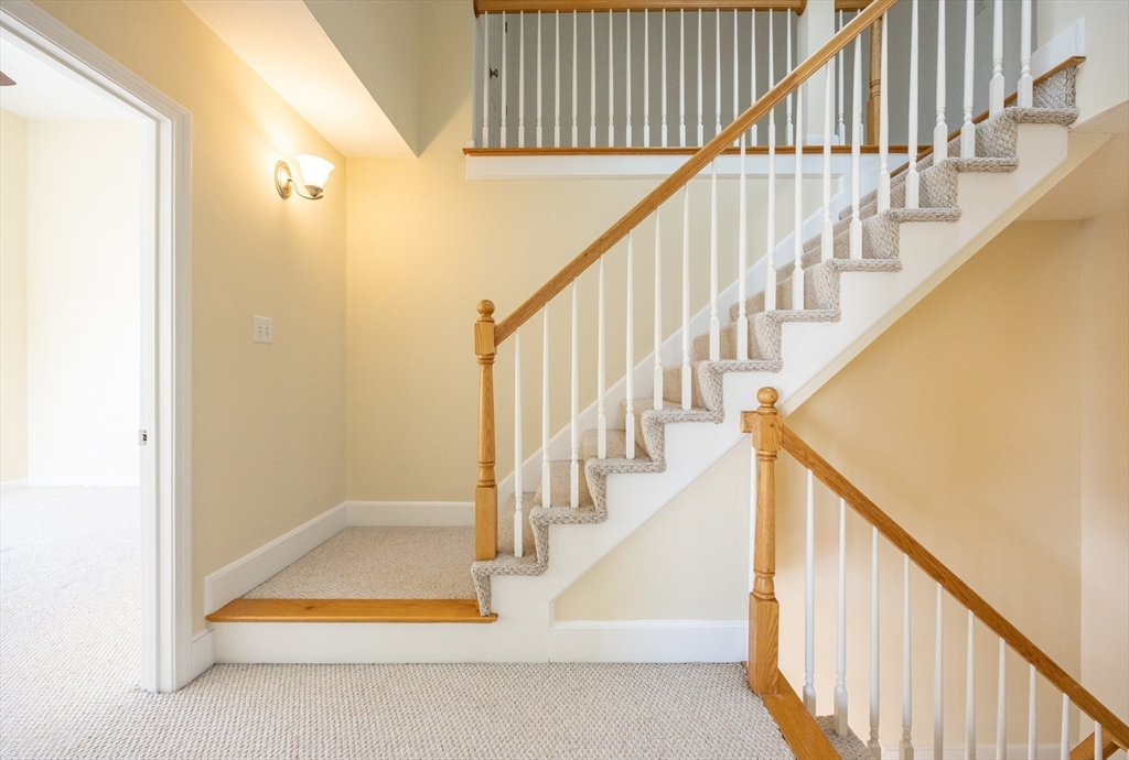 Experience sun-drenched elegance in Ashland’s Village of the Americas. As one of the final units built in the community, this meticulously upgraded Galleria-style townhome begins with a striking two-story glass foyer and curved staircase. The interior is bathed in natural light from south and west-facing windows, illuminating new gleaming hardwood floors.The chef’s kitchen features a 6’ granite island, stainless steel appliances, and upgraded cabinetry, flowing into an expansive living area with a gas fireplace. Retreat to the primary suite, a private sanctuary with cathedral ceilings, a second fireplace, and a walk-in closet with custom Elfa organization. Both bedrooms include en-suite baths, featuring a premium tiled shower and double vanity in master bath. Modern conveniences include living-level laundry, a loft for extra storage, and a finished walk-out basement perfect for a home office or gym. Step onto your private deck or enjoy the community’s vibrant play area and gazebo.