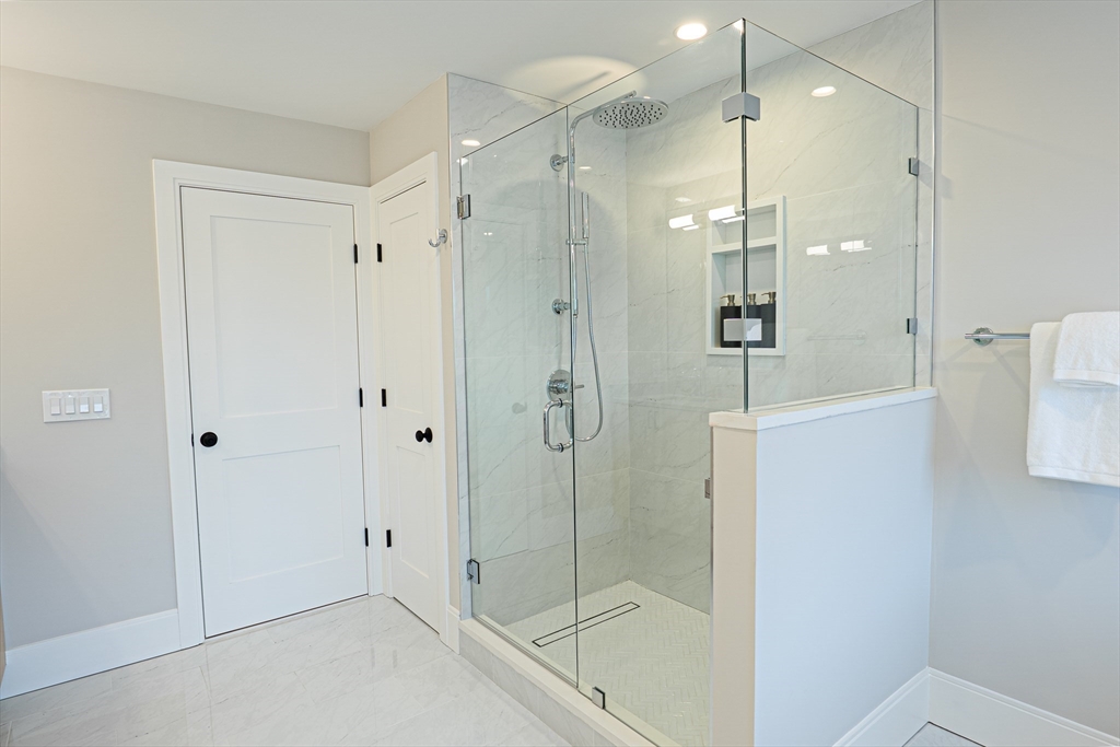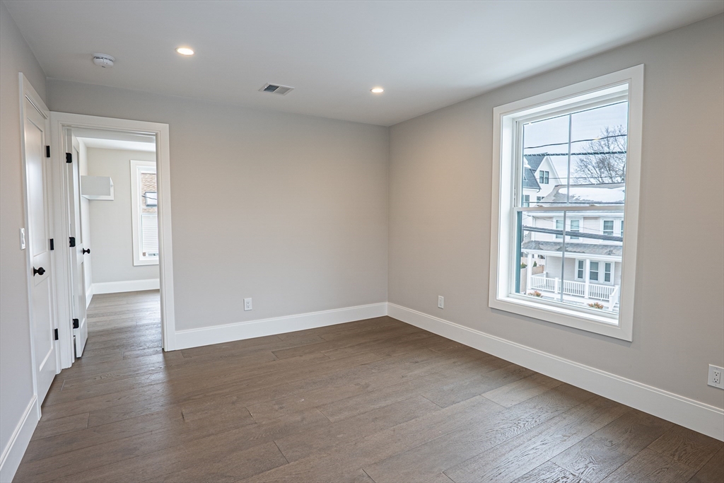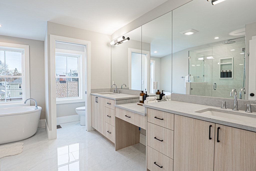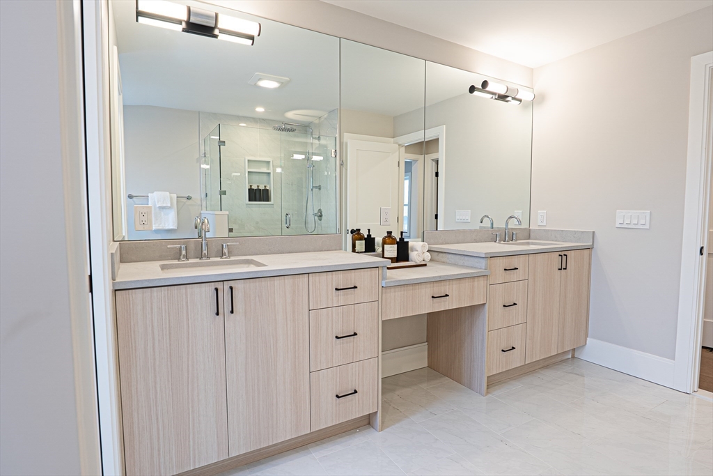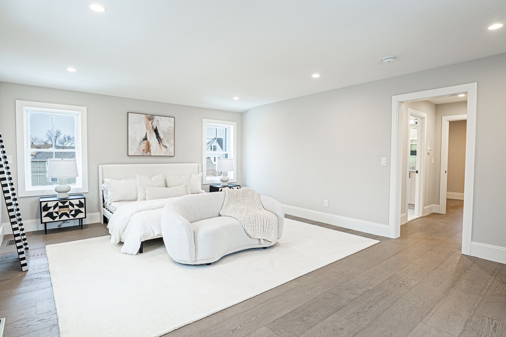 Welcome to this exceptional contemporary condo in West Roxbury’s desirable Brook Farm neighborhood, where modern luxury meets effortless comfort. This thoughtfully designed home features three spacious bedrooms, each with its own walk-in closet, two full bathrooms, and 2+ driveway parking spaces. The chef’s kitchen shines with top-of-the-line appliances, custom cabinetry, quartz countertops, and backsplash finishes. A sun-filled open layout, soaring ceilings, and 9” engineered hardwood flooring create a warm, sophisticated feel throughout. Enjoy your own private yard and deck, ideal for relaxing or entertaining. Additional highlights include a stucco exterior, high-performance windows, metal roof, and 30-year lifetime IKO roofing system. A true blend of style, comfort, and quality—move-in ready and not to be missed.