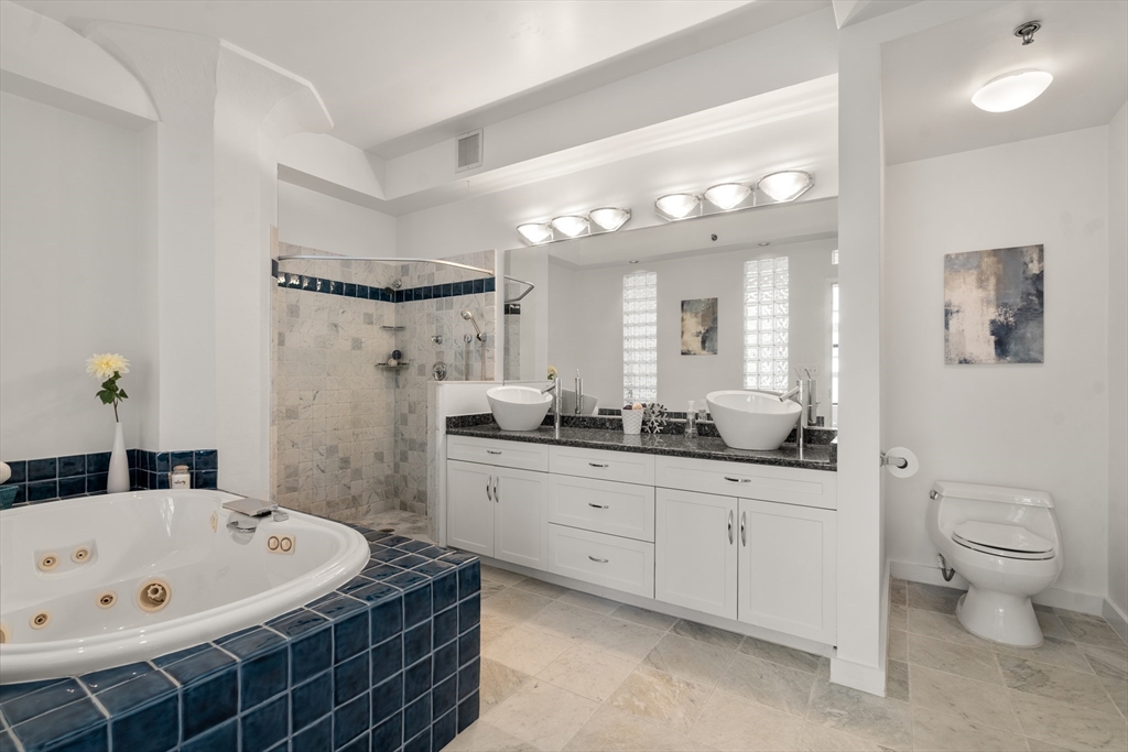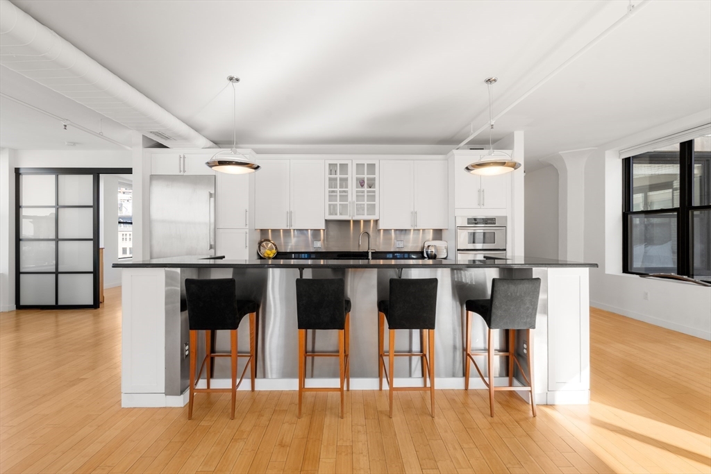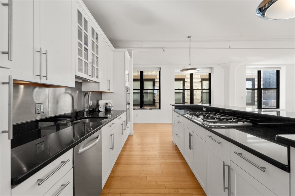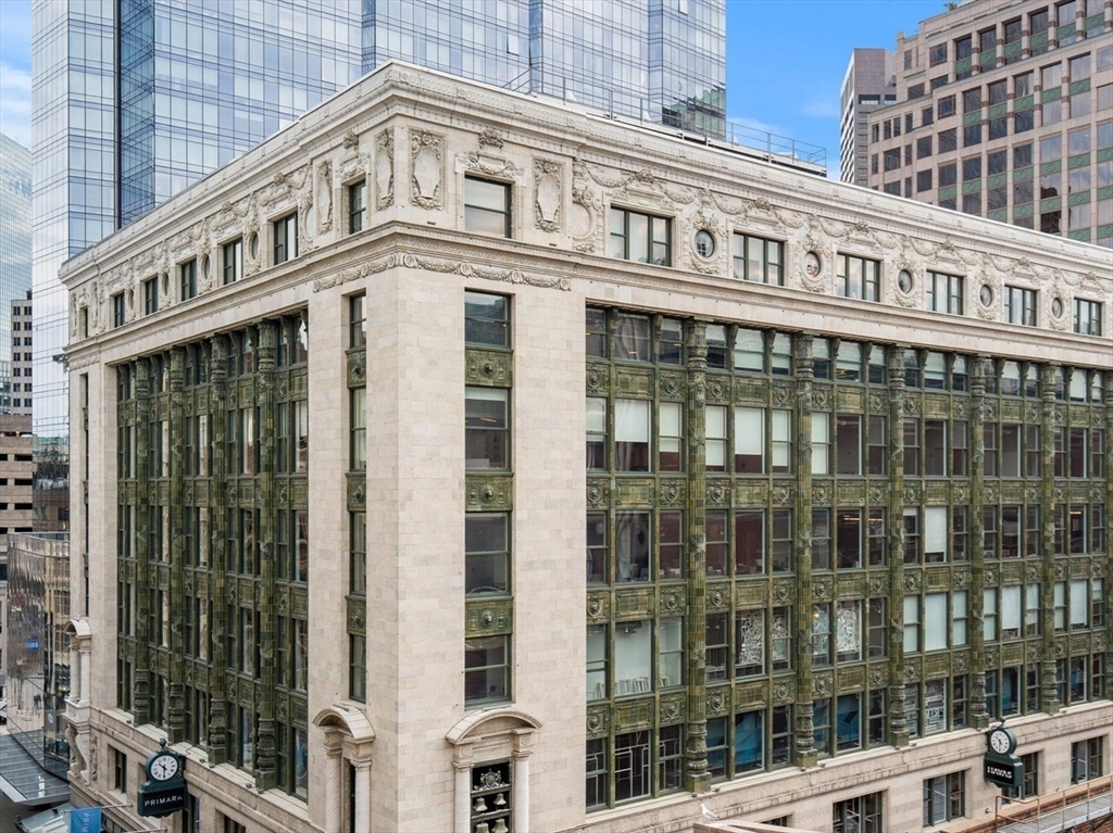 Stunning loft-style residence on the 10th floor of the historic Dexter-Ditson building, offering over 2,000 SF and sweeping views of Boston Common. With 20 brand-new windows and three exposures, this open, sun-drenched oasis is ideal for entertaining. The renovated kitchen features granite counters, custom white cabinetry, and top-of-the-line appliances, flowing seamlessly into an oversized living room and elevated dining area anchored by a dramatic gas fireplace. The primary suite offers an en-suite bath with jacuzzi, walk-in shower, and a grand walk-in closet. A spacious second bedroom provides flexibility for a home office or gym. Pristine hardwood floors, electric window shades, custom lighting, and an oversized private storage unit directly across the hall complete the home. Professionally managed elevator building with exquisite period detail, ideally located in the heart of Downtown Crossing, steps to premier shopping, dining, theaters, grocery stores, and 4 MBTA subway lines.
