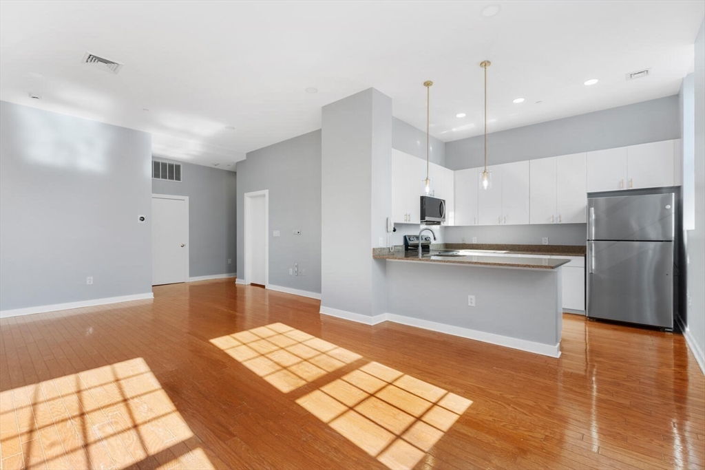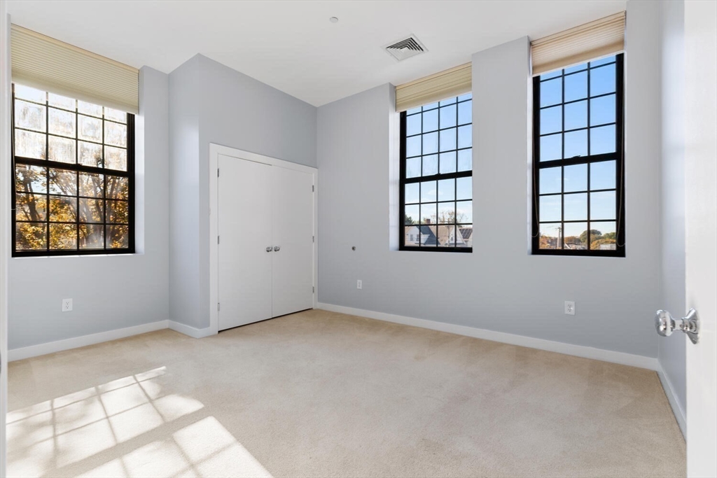 Bright corner unit for rent in a unique, converted school building offering just over 1,090 sq ft of living space. Located on the third floor, this apartment features high ceilings and excellent natural light throughout. Recently painted and well maintained, the unit includes an updated kitchen with new stove, refrigerator, and microwave, a newer dishwasher, and in-unit washer/dryer. The open living and dining area is ideal for everyday living, while the two bedrooms provide flexible layouts for sleeping, working from home, or guest space. Two full bathrooms add extra convenience. Originally built in 1889 and converted in 2004, the building blends historic character with modern comforts. Conveniently located near Malden Center, the MBTA Orange Line, bus routes, Boston, and Encore. Tandem deeded parking included. Pets under 25 lbs considered.