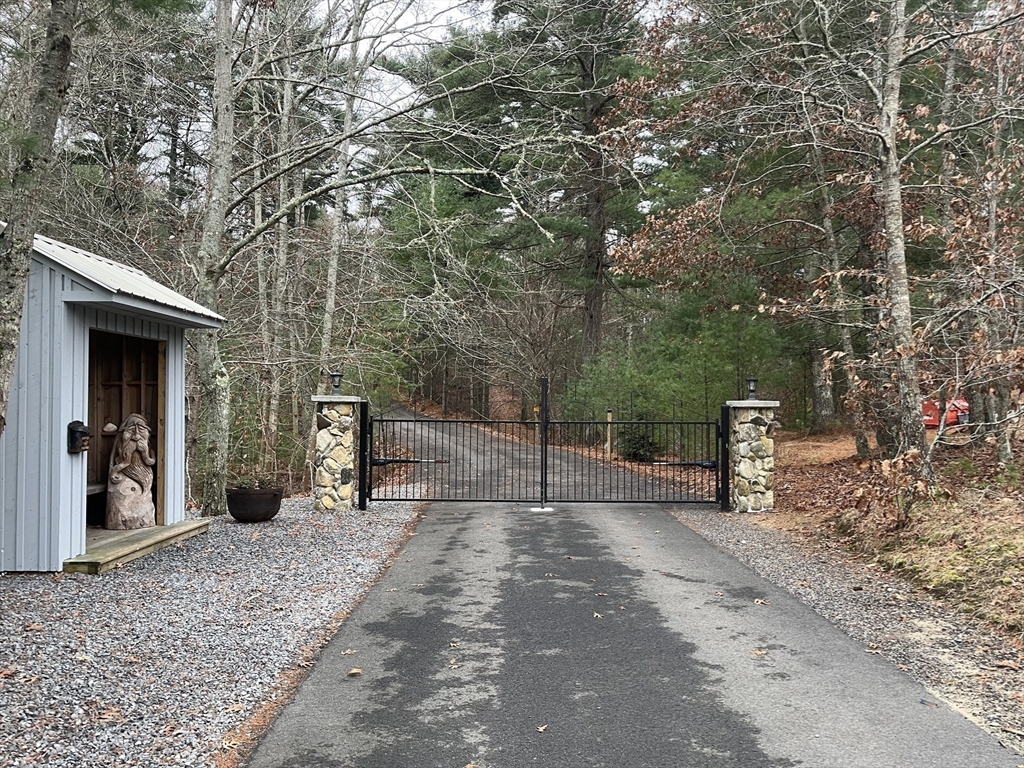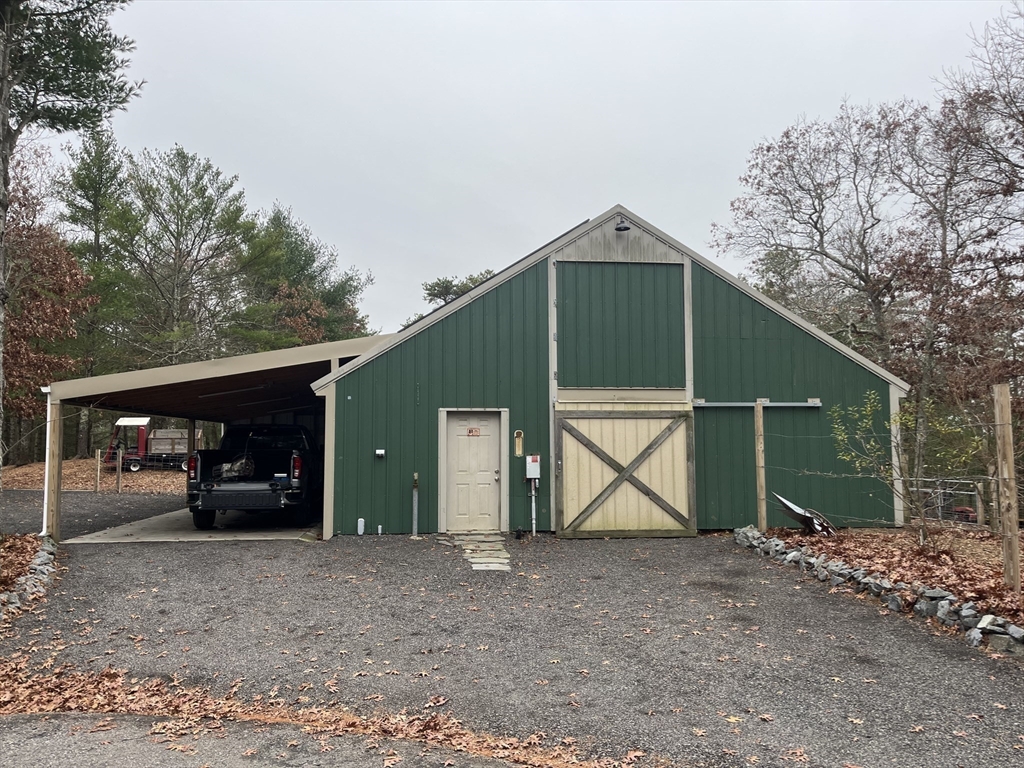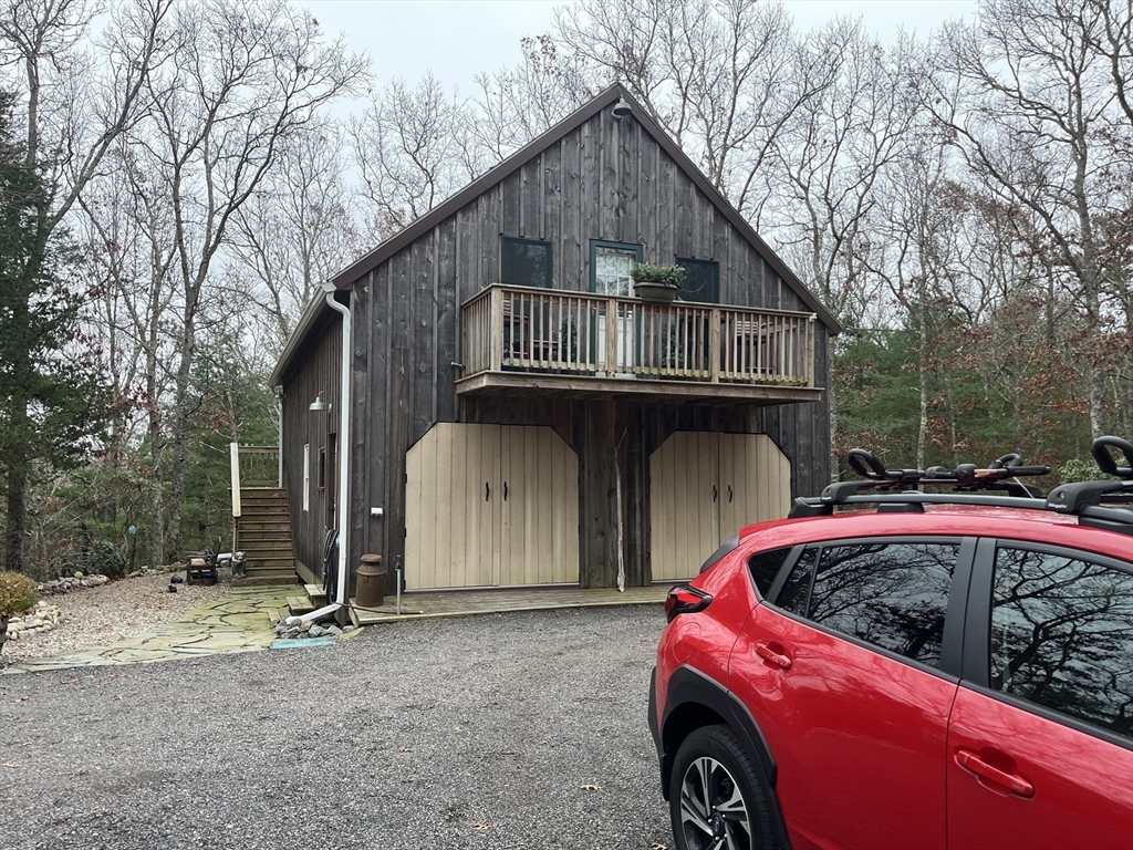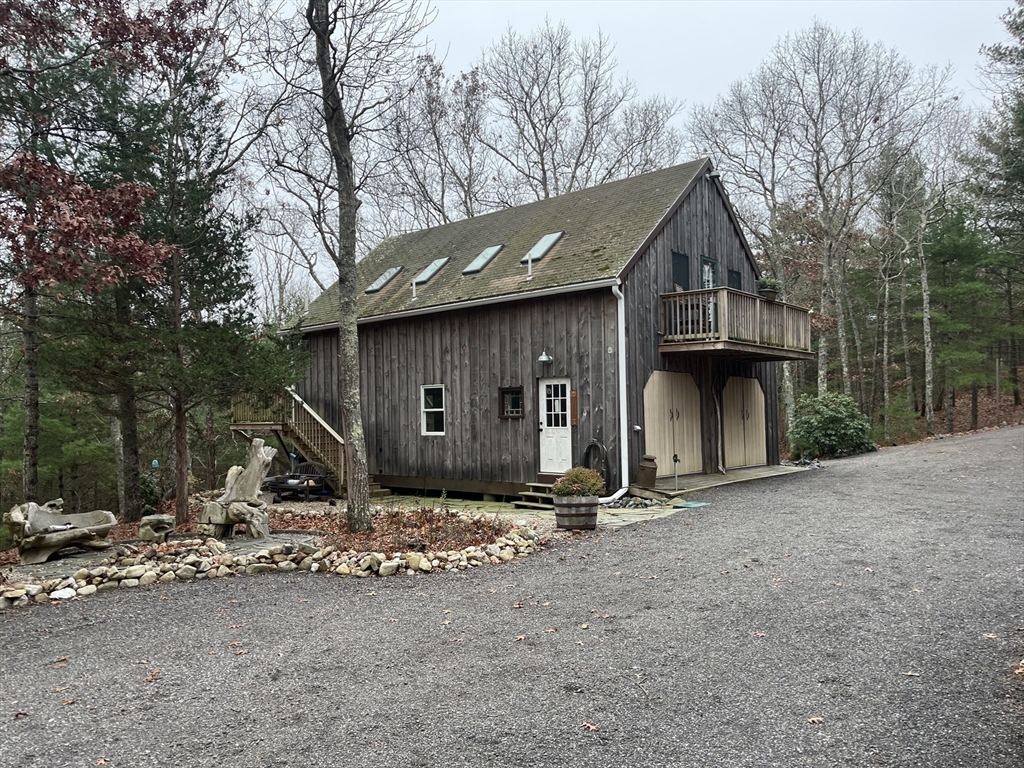 This one of a kind contemporary cabin is perched high on a hilltop, offering five acres & spectacular water views of Briggs Reservoir. Tucked away in complete privacy & located across from Billington Sea & just minutes to shopping, & the Historic Plymouth Waterfront/Downtown, this property offers the perfect blend of seclusion & convenience. The main home is a stunning rustic Post & Beam with an open concept layout, living room, dining area, new kitchen, full bath, & laundry. A spiral staircase leads upstairs to a full bath, two spacious bedrooms, one that has a private outdoor deck, perfect spot to take in peaceful surroundings. The detached wooden barn offers a workshop below & a studio living space above, ideal for guests, creative space, or an office. The metal barn includes a rear paddock, side access for farm equipment, car enthusiasts, contractors. Surrounded by conservation land with walking trails, gated driveway, you have endless possibilities!