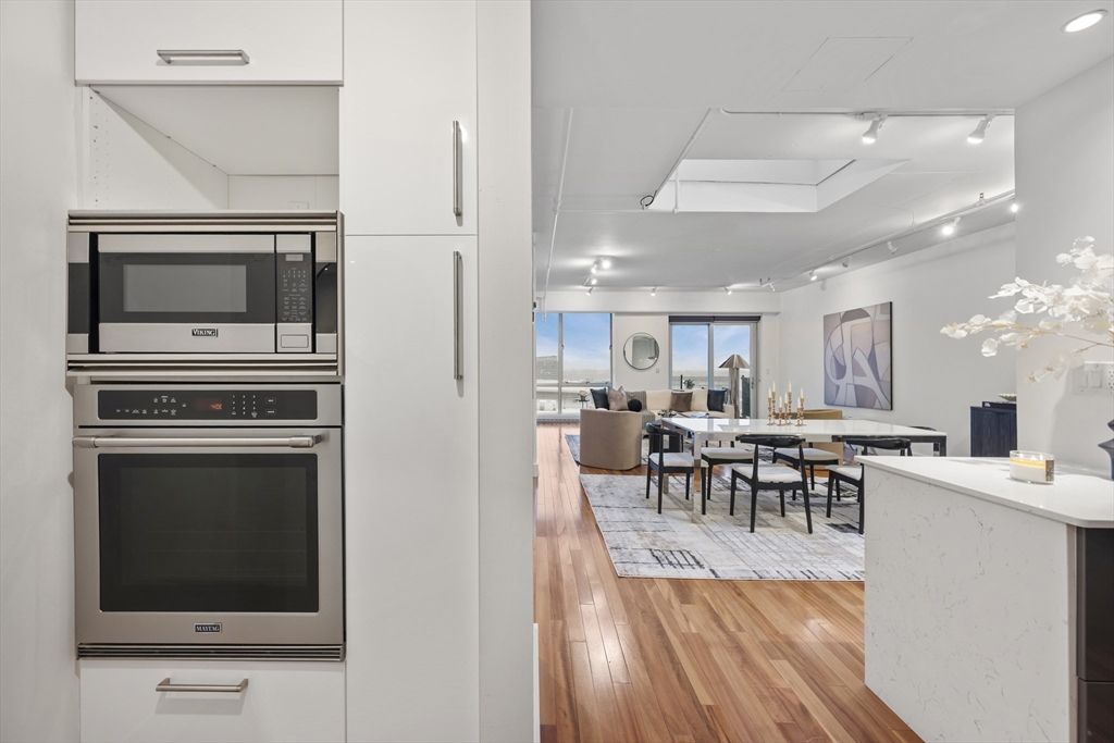 Come see this stunning penthouse offering 2 spacious bedrooms, each with generous walk-in closets, and 2 full bathrooms, . Sunlight pours through oversized windows, with a dramatic skylight beaming into the dining room, creating a bright, airy ambiance throughout. Step onto your private balcony — the perfect place to enjoy your morning coffee while taking in views of Boston. In the evenings, unwind beside the fireplace or host effortlessly in the beautifully designed open-concept layout, crafted for both intimate moments and sophisticated entertaining. Located in a 24/7 concierge elevator building including a full size garage parking space with opportunity for extra storage, this home delivers both luxury and convenience. Enjoy effortless access to the best dining, shopping, and waterfront attractions in the Seaport and South Boston. Urban living at its finest in an unbeatable location.