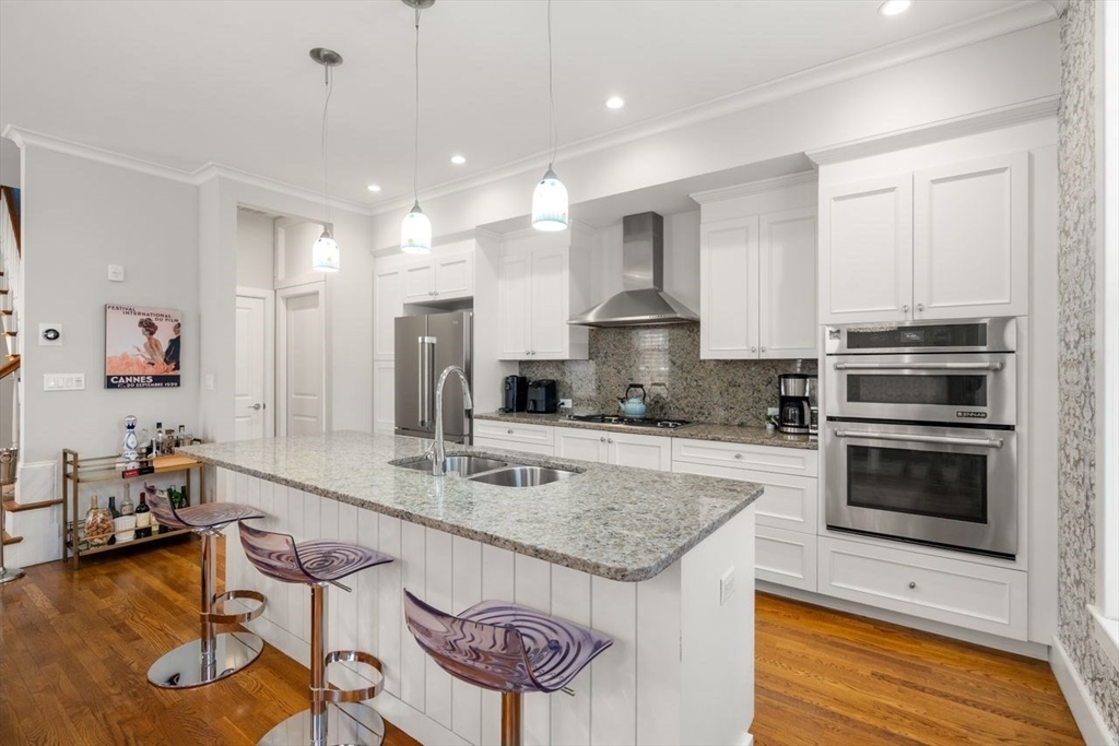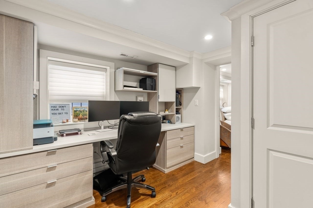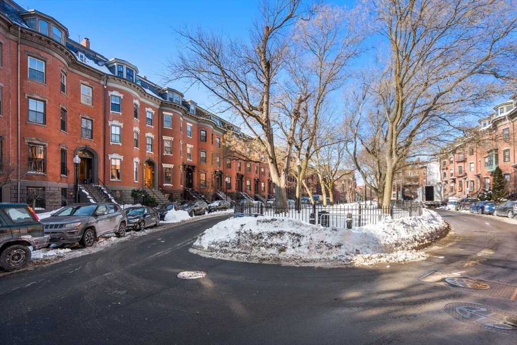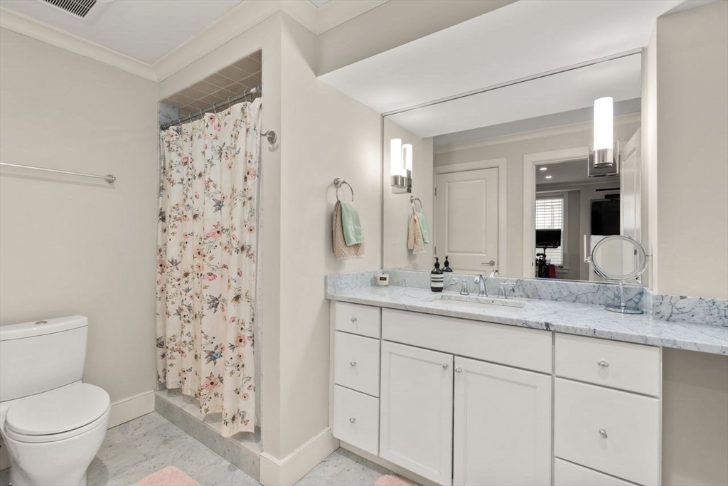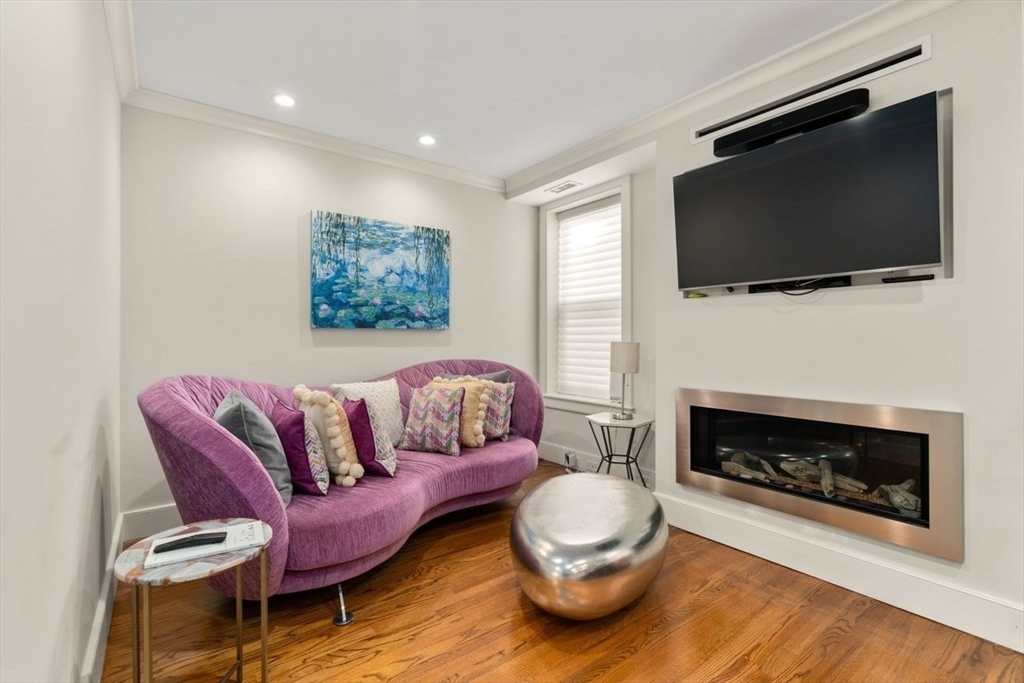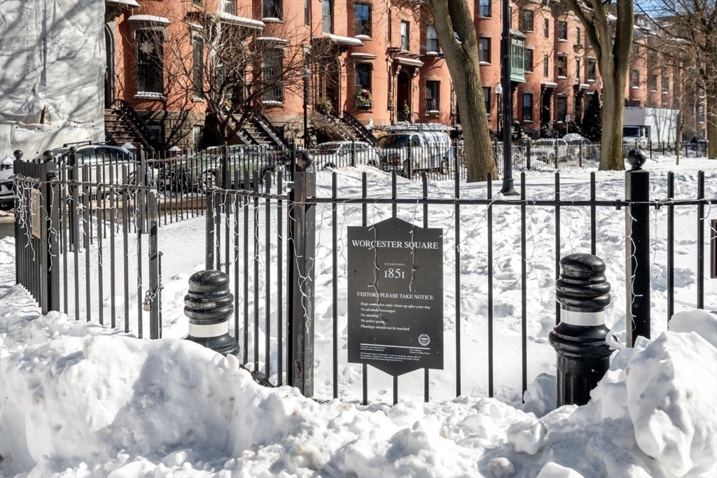 Welcome to One Worcester Square — a beautifully appointed 3-bed + den + office corner unit Triplex offering refined South End living. Enter the parlor level through a stylish frosted-glass door into a grand open-concept, high-ceiling living space with a dramatic three-sided glass fireplace and a motorized TV mount. The chef’s kitchen features JennAir Pro appliances and an oversized island with seating, seamlessly flowing into the dining and living areas. Upstairs, a private deck includes water access and piped gas for the grill and firepit. The two lower levels offer three bedrooms, a den with a fireplace, and a custom office area. The primary suite boasts custom closets and a spa-like bath with a double vanity and an oversized shower. California Closets, Nest, and Hunter Douglas shades complete this exceptional home, ideally located just steps to world class restaurants, boutiques, parks, and everything the South End has to offer. This is South End Living.