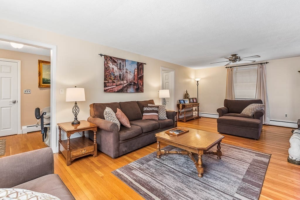 Welcome to Sharon! This home has been meticulously cared for by the owners for 40 years. Hardwood floors throughout the home, 2 renovated bathrooms and kitchen/dining area. There's a formal dining room as well... and the living room is large with a mini split and ceiling fan. Finished basement is perfect for a man cave and also has a great deal of storage! Town water and GAS HEAT! Walk out from the basement to a large patio, perfect for entertaining! Just a 5 minute drive to Cobb's Corner and the commuter rail! Open house Sat Feb 28th 11-1p and Sun March 1st 1-3p
