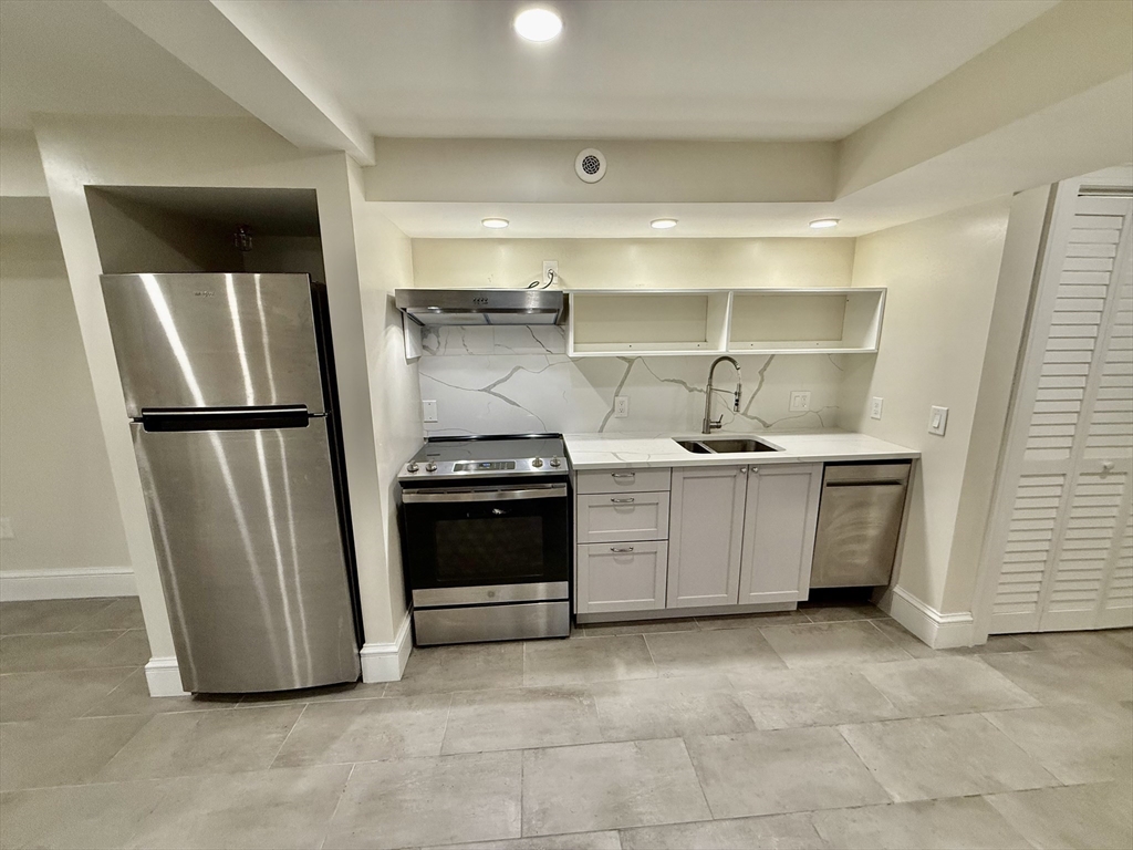 Exquisitely renovated, massive luxury 1-bedroom condo with 1 parking space included! This entire lower-level unit was gut renovated in 2023 and offers a sprawling open floor plan with sun-drenched window exposure, high ceilings, beautiful flooring, and central air. Single-level living at its finest, featuring a stunning, top-of-the-line kitchen, full-size in-unit laundry, and a welcoming entry foyer. Ideally located on a prime side street just steps to all that Oak Square has to offer in one of Brighton’s most desirable neighborhoods. Enjoy abundant free on-street parking and close proximity to shops, restaurants, and the Charles River. Easy access to the Mass Pike, Memorial Drive, Storrow Drive, Downtown Boston, and Cambridge. Walk to Boston College and convenient to major universities, hospitals, public transportation, express bus lines, and the commuter rail. Available 9/1.