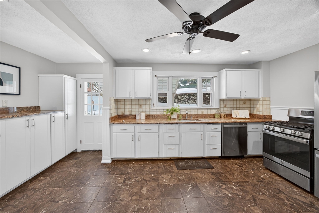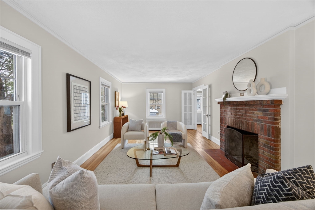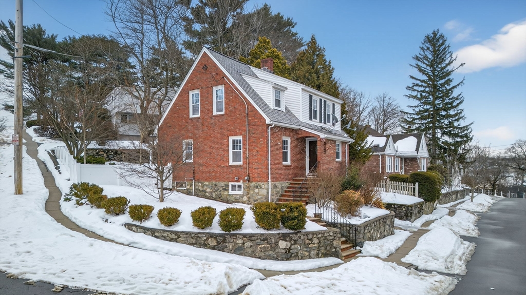 Charming Cape Cod–style brick home set on a desirable corner lot, offering timeless character and thoughtful updates throughout. The freshly painted interior and refinished hardwood floors create a bright, welcoming feel. A front-to-back fireplace anchors the spacious living room and flows seamlessly into the dining room featuring a classic built-in cabinet. The large kitchen offers abundant cabinet storage and direct access to the newly fenced backyard and patio — perfect for entertaining or relaxing outdoors. Upstairs, the primary bedroom features double closets, complemented by two well-sized bedrooms and an updated full bath. The finished lower level provides flexible space ideal for a home office, gym, or playroom. Conveniently located near Oak Grove Station and downtown Malden for easy access to shops, dining, and transit.