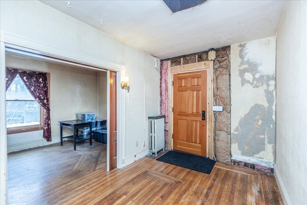 Bring your ideas and build equity in one of Salem’s most sought-after neighborhoods! Originally the carriage house for the neighboring Lafayette Street home, this circa-1900 home is full of charm and possibility. Step onto the front porch and into a generous entry hall with coat closet that flows into a living room featuring hardwood floors with a beautiful octagonal inlay design and solid wood pocket doors. The dining room offers a newer Andersen slider overlooking the sweet backyard, and just beyond is a flexible bonus room. Once the front porch, it now becomes a perfect home office, den, bedroom, or creative space. The kitchen runs along the left side of the home, complete with water views from the sink. A full bath finishes the first floor. Upstairs, three former bedrooms have been combined into a spacious cathedral-ceiling primary suite with adjoining 3/4 bath. Driveway and a backyard shed add everyday ease. A rare opportunity in a location you’ll love!
