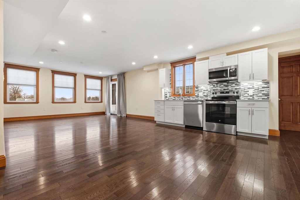 Enjoy modern, sun-filled living in the heart of downtown Danvers! This spacious 1-bedroom, 1-bath apartment features an open floor plan and a stylish new kitchen with white cabinetry, granite countertops, stainless steel appliances, and under-cabinet lighting. The bright living area offers ample closet space, hardwood floors, recessed lighting, and a sliding glass door that leads to your own private rooftop deck—perfect for relaxing or entertaining. Additional amenities include central air, elevator access, and convenient coin-op laundry on the same level. Rent includes heat, electricity, and Verizon internet for easy, worry-free living. One off-street parking space is provided. No pets and no smoking allowed. Ideal downtown location close to the highway, local shops, restaurants, and everyday conveniences.