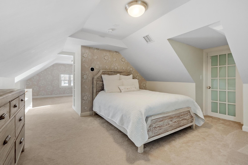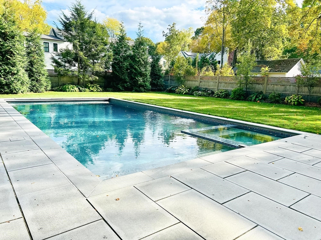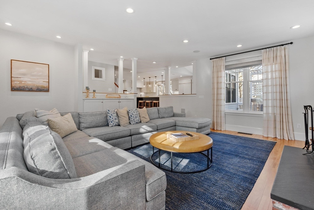 Discover this beautifully updated home in a prime Concord Center location! This turnkey residence offers three floors of thoughtfully designed living spaces blending timeless charm with modern amenities. The inviting wrap-around porch welcomes you to relax overlooking Emerson Field. Inside, the first floor features spacious living and dining rooms, each with a cozy fireplace, and a private office. The chef's kitchen showcases premium finishes and a sizable walk-in pantry, with eat-in dining area extending to an outdoor oasis—a bluestone patio with a wood-burning fireplace plus a heated pool & jacuzzi creating an idyllic setting for relaxation. The second floor offers four generous bedrooms and a full bath, including a serene primary suite with spa-like bath. The third floor hosts a two-room suite with a full bath. The finished lower level provides flexible space for recreation & fitness. Enjoy this unbeatable location close to Concord's shops, restaurants, schools, and commuter routes.