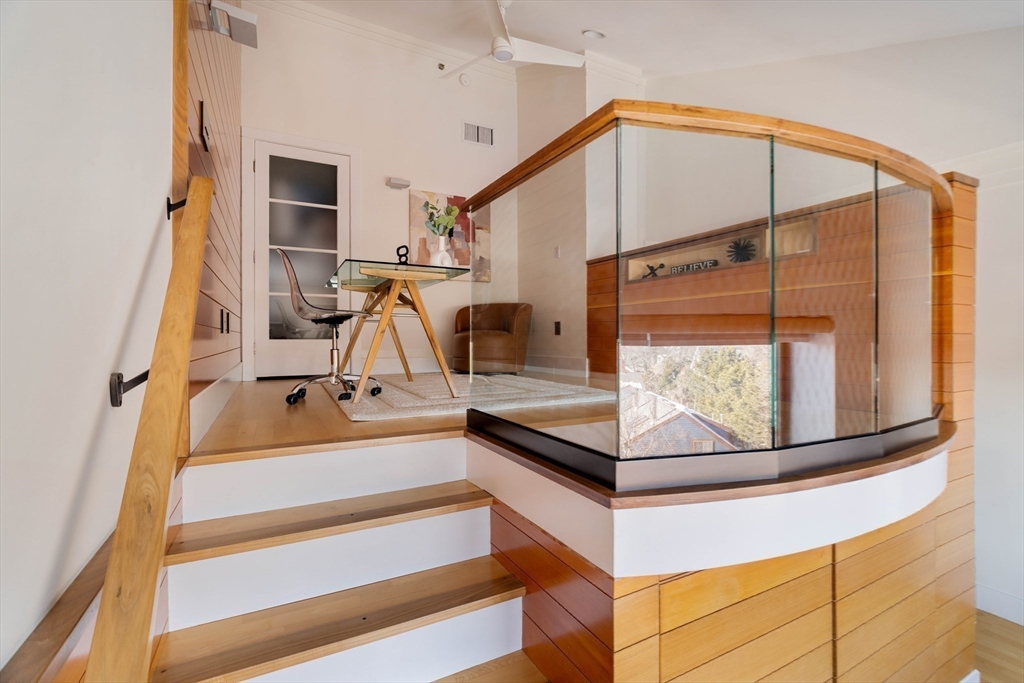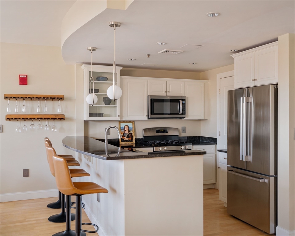 Welcome to one of Cambridgeport’s most coveted penthouses at Dana Park Place. This sun-drenched residence pairs serene views with premier urban living. The elegant open living and dining area is wrapped in natural light and opens through French doors to an east-facing private deck, perfect for refined entertaining. The well-appointed kitchen features stainless appliances, granite countertops, plentiful white cabinetry, and a walk-in pantry. A flexible floor plan offers a custom-built home office plus two spacious bedrooms and a shared bath upstairs, along with a luxurious primary bedroom suite with a jacuzzi tub and large walk-in closet. Enjoy garage parking, central air, and in-unit laundry. Full-service elevator building with professional management, weekday concierge, fitness center, event space, and bike storage. Moments to the Charles River, Central Square, MIT, dining, shopping, and Red Line MBTA. This is the one!