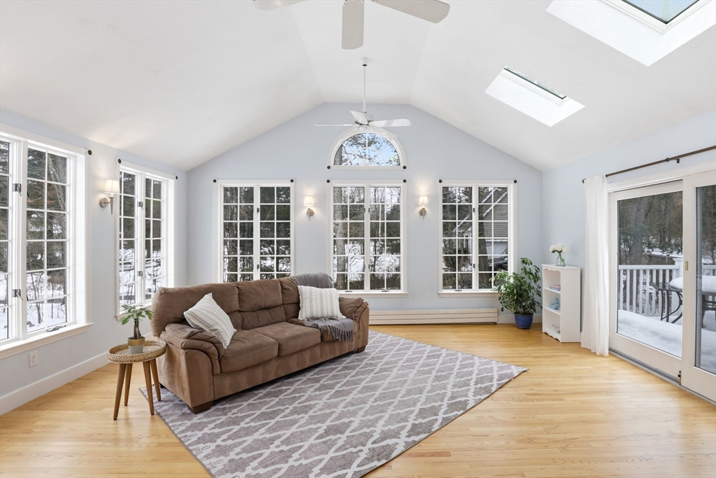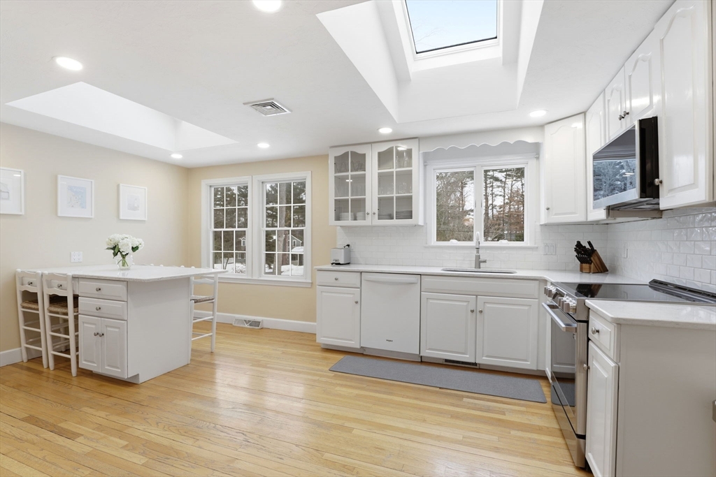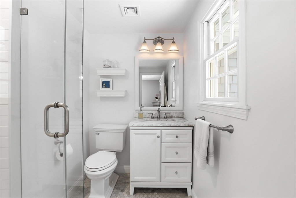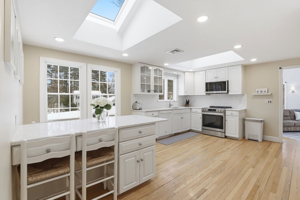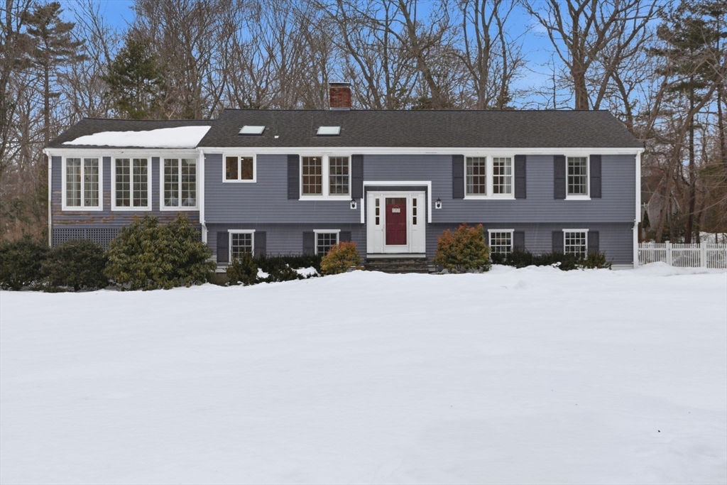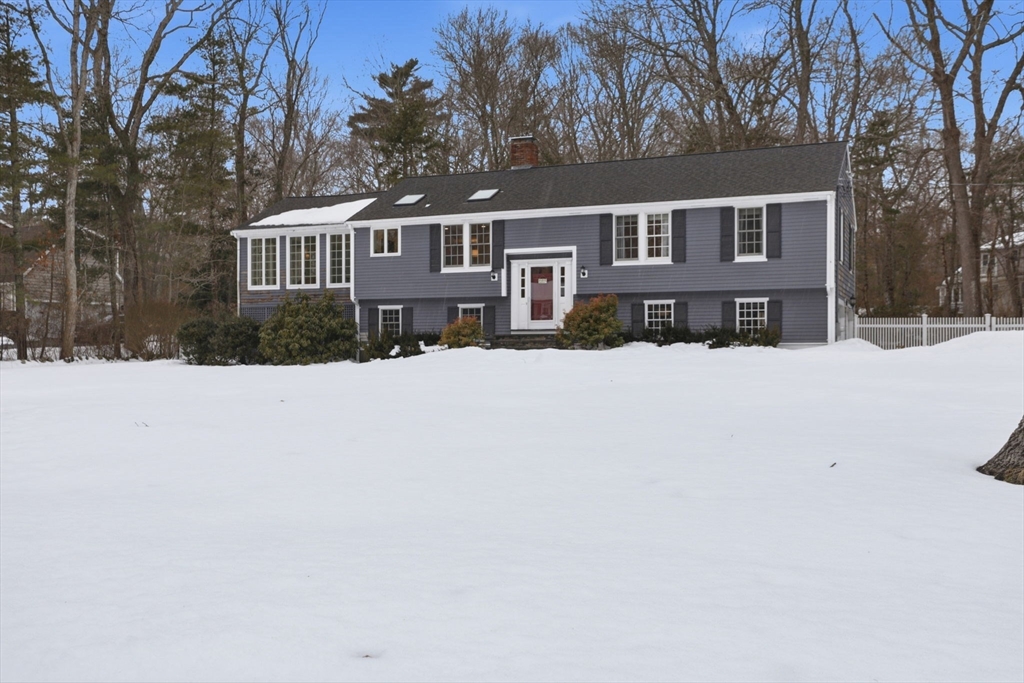 Nestled at end of a classic tree-lined cul de sac, this home is a dream spot if you're looking to enjoy coastal town living on a private 1-acre lot in one of the best neighborhoods in Scituate. So much space inside w light-and-bright great room w skylights, cathedral ceiling+sliders to large back deck overlooking scenic backyard, the open-concept kitchen w quartz counters, upgraded SS appliances+dining area, and the expansive family room w fieldstone fp+picture window. Primary bd w custom tile en suite, closet system+2 additional bds w updated full bath complete lovely 2nd fl. Spacious 1st fl w additional fp offers flexible options for rec/office areas as well as storage closets w shelving, laundry room+access to 2-car garage. Ideal commuter location (close to 3A, train, Rt 3 hwy exit, Hingham boat), generator, town sewer, gas, regraded/reseeded yard, near bustling harbor+Greenbush. The perfect mix of space, privacy, neighborhood, nature+convenience. Live the Scituate dream right here.