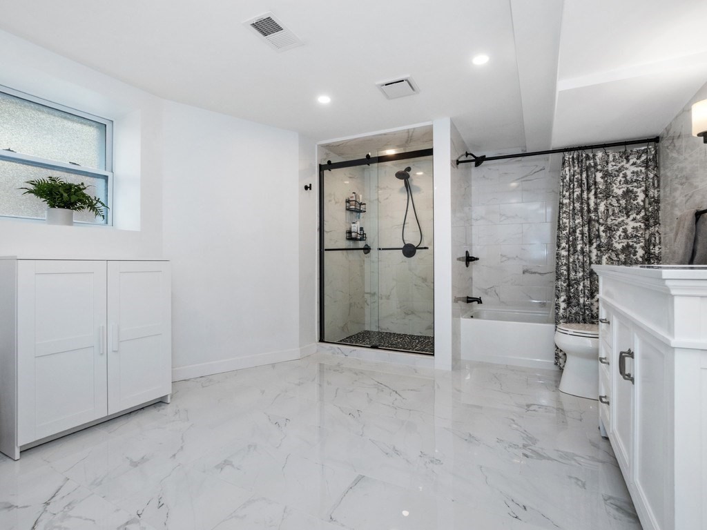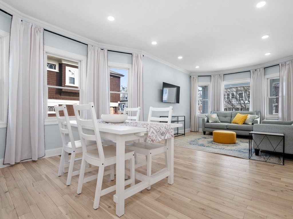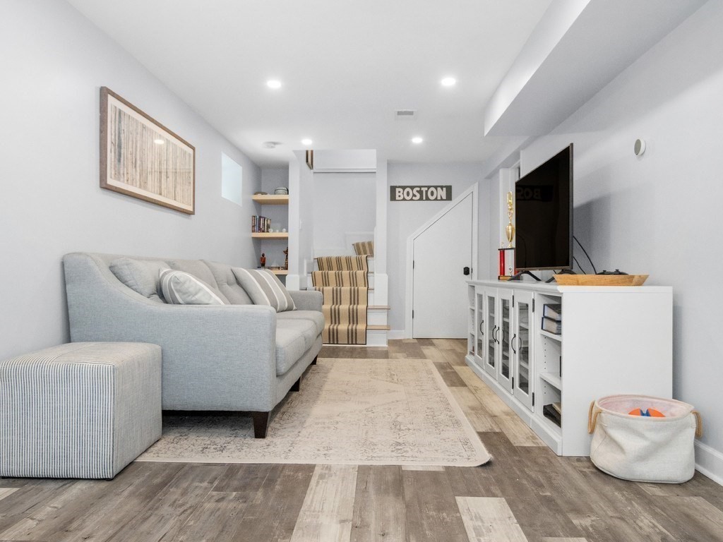 Beautifully renovated first-floor condo overlooking Oakley Country Club, this home offers top-quality finishes, a garage, and an unbeatable location near Cushing Square, public transportation, Route 2 and the Mass Pike. The bright open living and dining area features hardwood floors, crown molding, recessed lighting, and a bay window. The stunning white kitchen includes quartz counters, tile backsplash, high-end stainless-steel appliances, gas cooking, a farmer’s sink, a large island, and a coffered ceiling, with direct access to the rear porch and patio. The main level bedrooms offer unique touches and a beautifully updated bath with a quartz vanity and tub/shower. The fully finished lower level adds a spacious family room, generous bedroom, laundry, and a luxurious second bath with marble tile, a soaking tub, and a separate shower—perfect for guests or extended living.