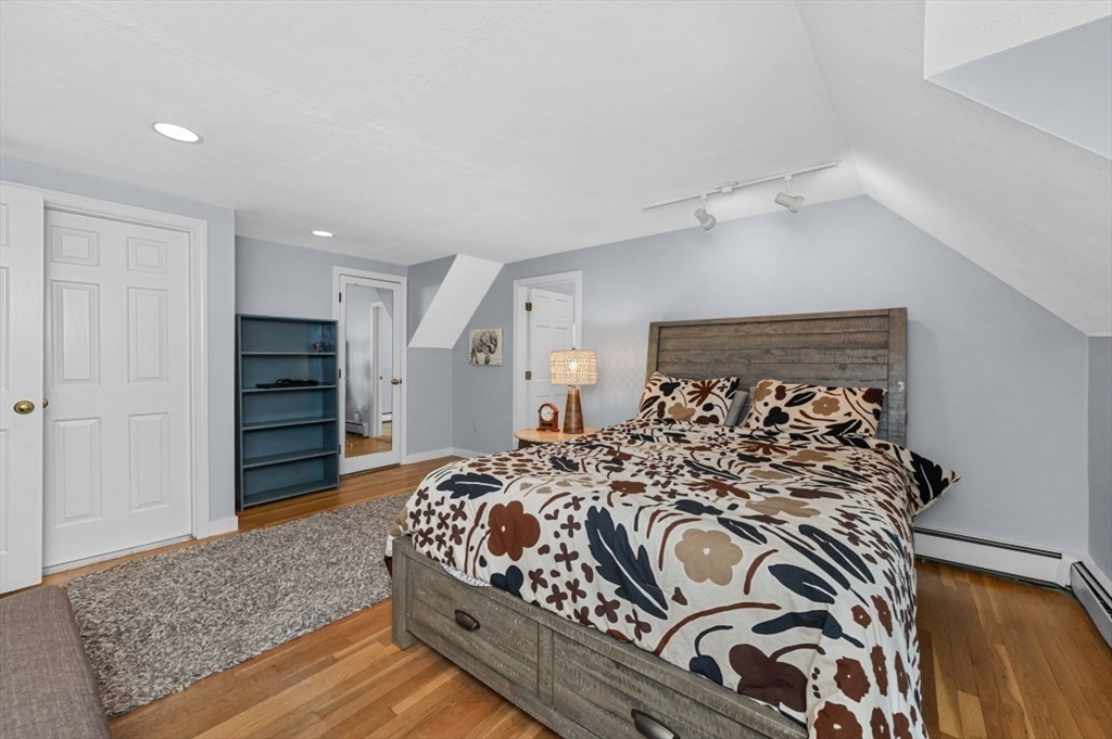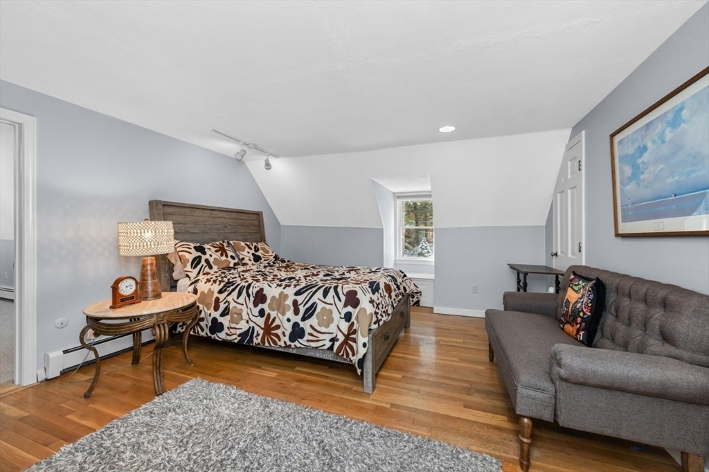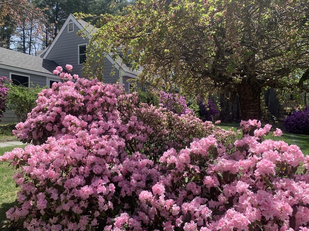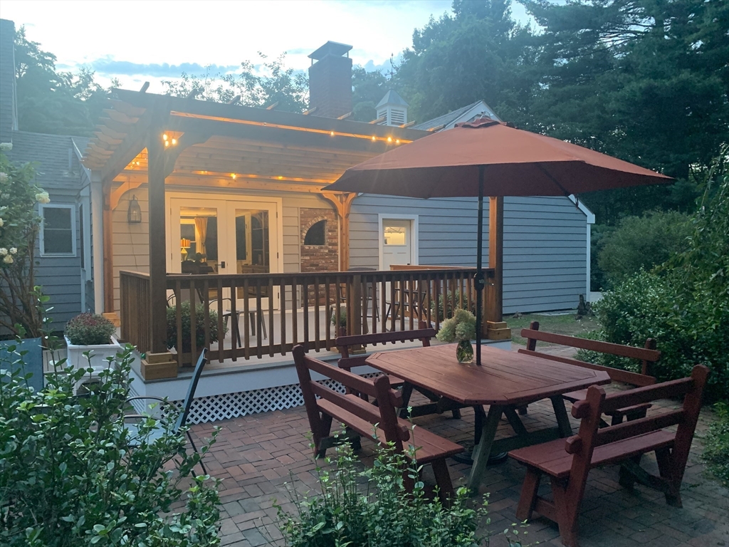Expanded Cape offering first- and second-floor primary suites w/ stunning gardens, at the end of a quiet dead-end street. Enter through the newly built 2-car garage into a spacious mudroom. The first floor features a flexible layout with 1/2 bath & large dining room, accented by wainscoting, crown molding, built-ins, a skylight, and French doors opening to a new deck with cedar pergola. The bright eat-in kitchen includes granite counters, stainless appliances, and a generous pantry. The oversized living room centers around a wood-burning fireplace, while the first-floor suite provides a private retreat with a wood stove, walk-in closet, in-suite laundry, and a renovated marble bath with steam shower & soaking tub. Upstairs offers another bedroom with en-suite bath & a walk-through fifth bedroom or office, plus 2 additional bedrooms & full bath. The high-ceiling basement adds potential for more living space. Recent updates include the roof, Everlast siding, heating system, and windows.