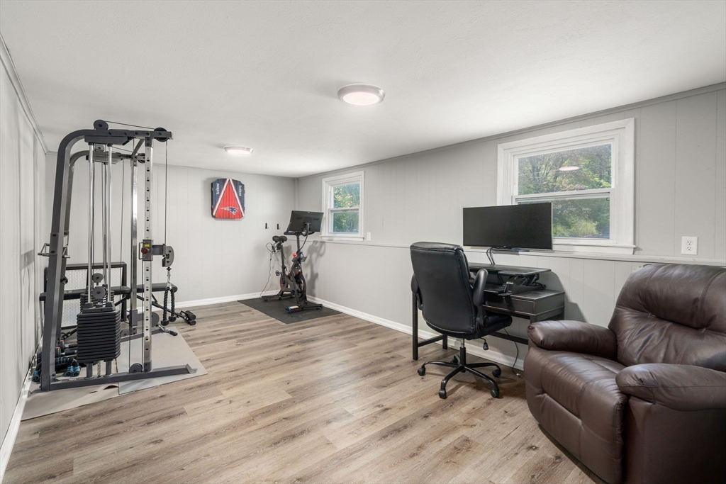 Located in a sought after cul de sac, this well maintained 3 bedroom home sits on a beautifully manicured 14,000 sq. ft. lot with a fenced in back yard. The main level features a modern open floor plan with recently refinished hardwood floors throughout the living space, hallway, and all three bedrooms. The family room offers a vaulted ceiling and large picture window, filling the space with natural light. The open concept kitchen includes a large island, stainless steel appliances, and granite countertops. The lower level offers a spacious additional room perfect for a home office, exercise room, or future expansion. There is an unfinished basement that provides ample additional storage. The three-season porch provides an ideal space for relaxing or entertaining. Move-in ready and full of potential, this is the home you’ve been waiting for!