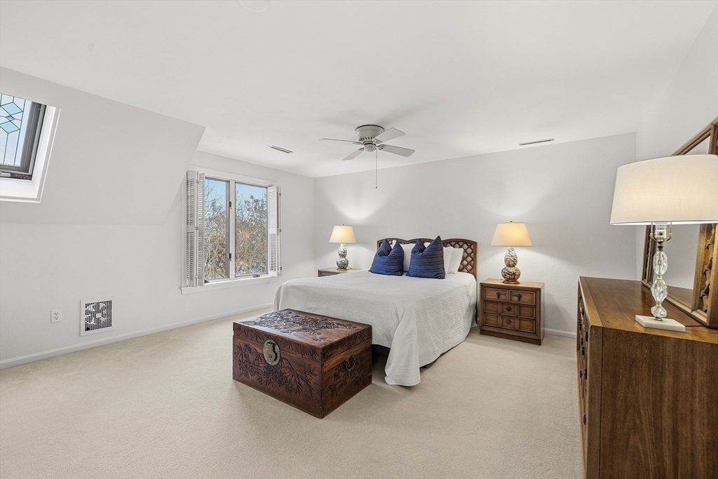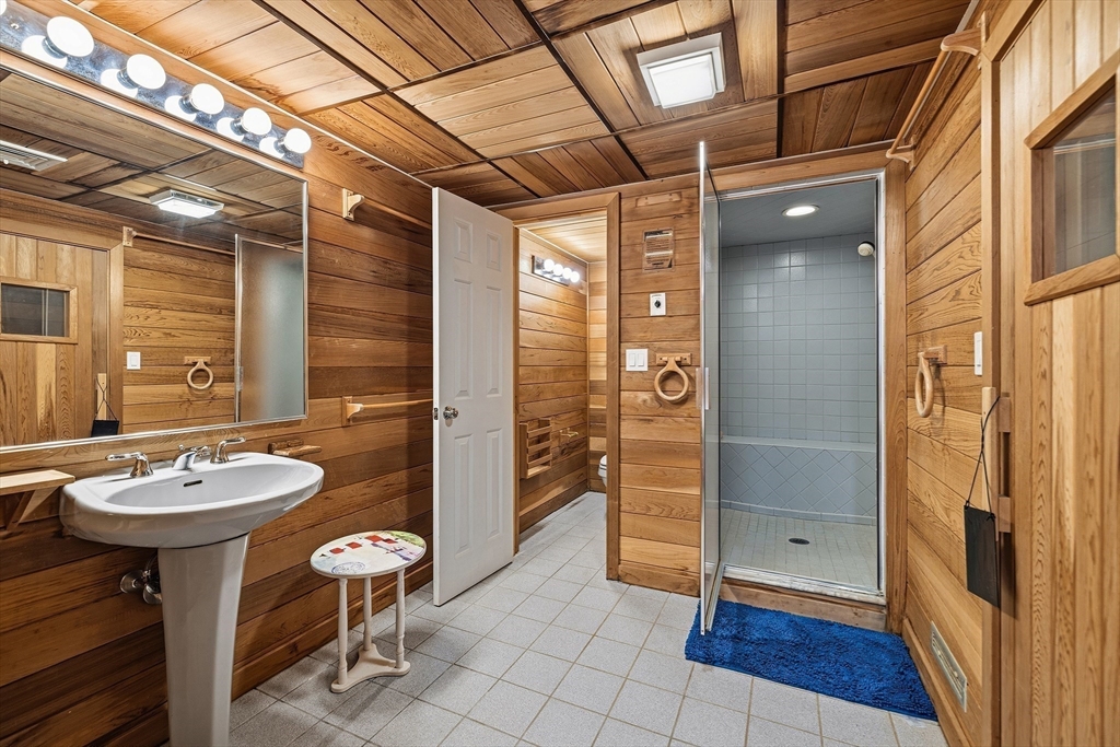 Well Maintained coastal luxury, single level living in this sun-drenched unit @ coveted Ocean Ledges Condominiums. Boasting over 2,200 square feet of versatile living space & well managed HOA, you will enjoy soaring ceilings, hard wood floors, skylights, expansive floor-to-ceiling windows that frame serene wooded views. The MAIN LEVEL offers an airy living/dining room centered around a cozy fireplace, a well-appointed kitchen with direct deck access, as well as a spacious primary ensuite bedroom & full bath. Retreat to the UPPER LEVEL suite to enjoy peeks of the ocean and a dedicated dressing room/office space(chair lift in place or can be removed). Amazing FINISHED LOWER LEVEL is cedar lined w/family room, private outdoor patio entrance w/flexible bonus/bedroom & private sauna & steam shower! Located just over a half-mile from the beach & only one mile from the heart of downtown Rockport, Private one-car garage & Guest parking complete this lovely home.