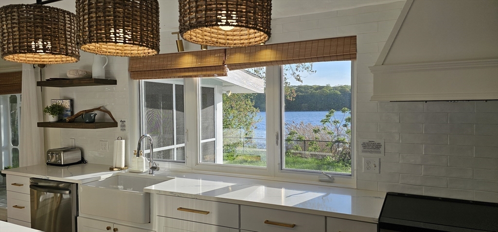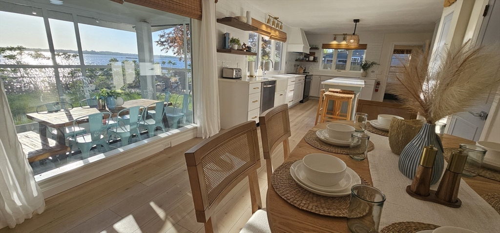 Rare waterfront opportunity with walk-in lake and beach access on scenic Watuppa Pond. This beautifully renovated 4-bedroom, 2-bath two-unit property offers the perfect blend of luxury living and investment potential and has been successfully used as a short-term rental. Each unit features its own kitchen and living space, providing flexibility for personal use or income-producing opportunities. High-end custom kitchens showcase quartz countertops, top-of-the-line appliances, designer finishes, and expansive picture windows with stunning water views. Luxury vinyl plank flooring flows throughout, complemented by abundant natural light, mini-split A/C, and a cozy living room fireplace. Enjoy front and back yards, a waterfront patio, and two spacious screened three-season porches—one ideal for large-scale dining and entertaining. Beautifully upgraded bathrooms feature custom tile work and quartz countertops. A truly special waterfront property offering lifestyle, design, and versatility.