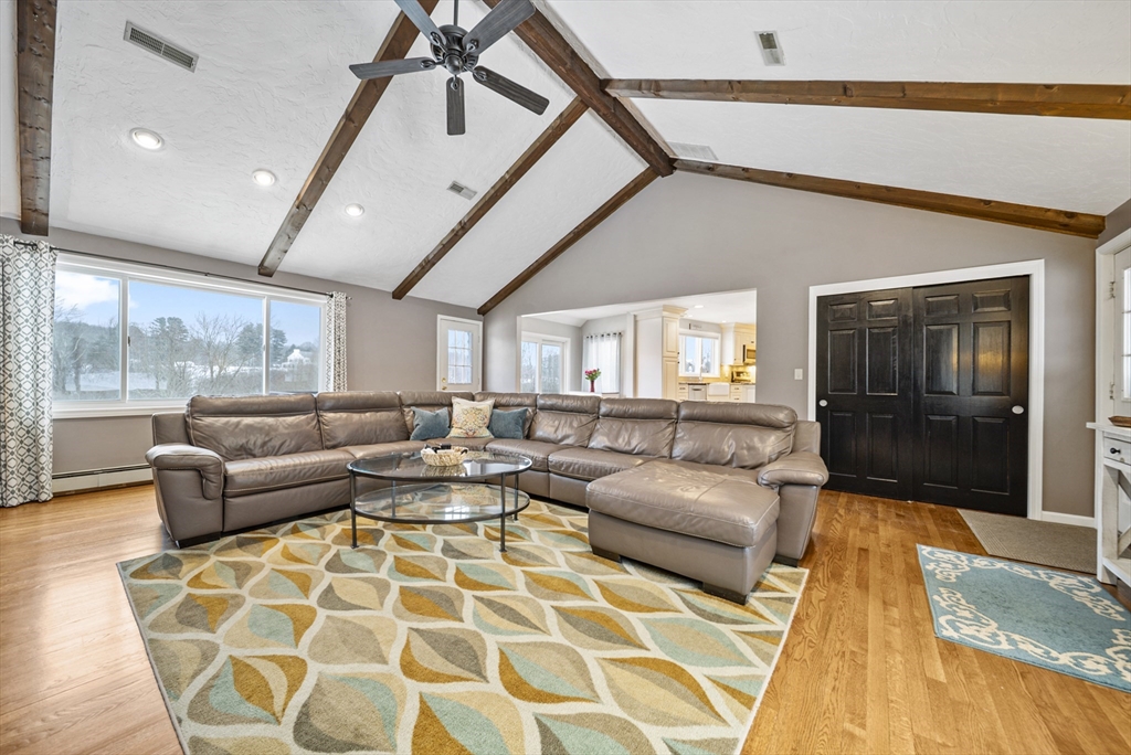 Situated on a 2 acre lot among farmland this stunning and meticulously updated, 4 bedroom, 2.5 bathroom expansive home has it all. An entertainers dream, this home has an open concept chefs kitchen with granite counters and oversized center island opening to dining area with wine bar, beverage fridge and additional cabinetry. The heart of this home is the great room with cathedral ceilings, floor to ceiling stone gas fire place, oversized windows and slider opening to deck. Formal living room with wood burning fireplace, updated half bath and laundry finish the first level. Upstairs there are 4 generously appointed bedrooms, a primary suite with California closet and bath with stone/tile fixtures, three additional bedrooms and another updated bath. Expansion potential in the walk out basement, opening to new patio and above ground pool. 2 car garage, all hardwood floors, tons of storage and updates throughout, this home is truly turn key. If you love to host, this gem is for you.