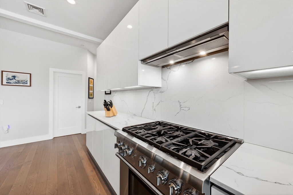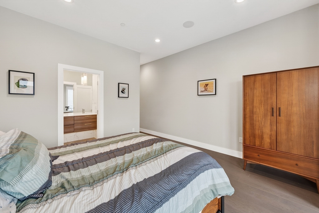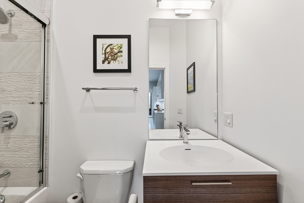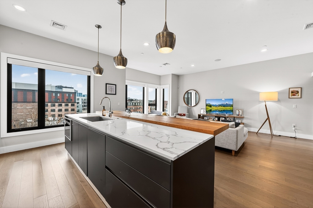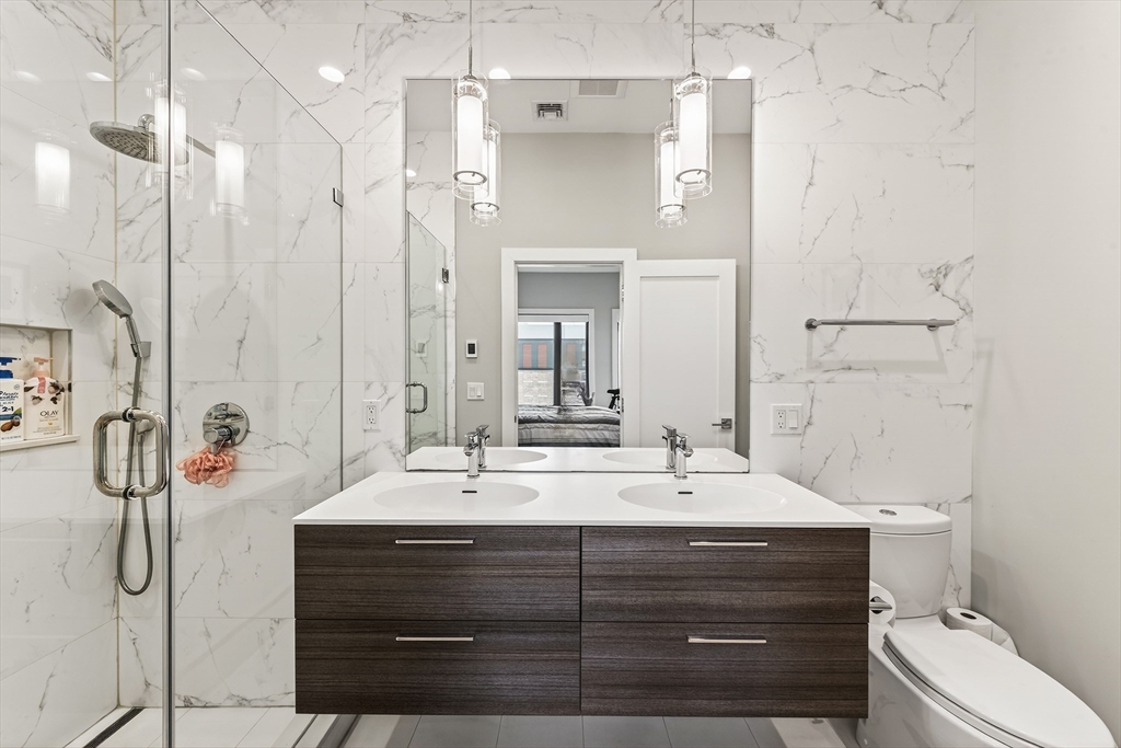 Perched atop a boutique 23-unit elevator building, this stunning two bedroom, two bathroom penthouse at 39 A St #22 offers refined city living in a prime South Boston location, just on the edge of both the South End and Seaport. The modern kitchen featuring Thermador appliances, quartz countertops, and sleek finishes is complemented by soaring ceilings, and a large open layout that makes entertaining a breeze. Custom features throughout including built in Sonos speakers, Lutron electric shades on all windows and a custom lighting hub upon entry. Enjoy scenic city views from your oversized private roof deck and head house, along with additional private outdoor space, perfect for relaxing or entertaining. Two garage parking spots provide rare convenience, while professional management ensures peace of mind. Just around the block from the West Broadway T station, multiple bus routes and minutes to I-93, this home delivers exceptional access and effortless urban living.