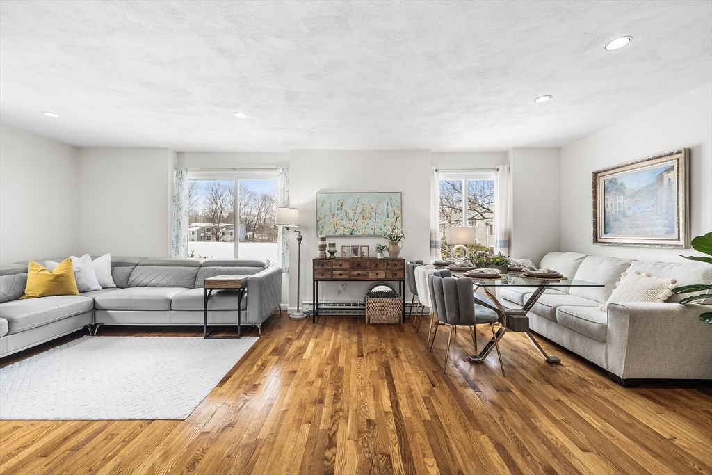 Welcome to 55 Staffordshire Ln Unit B in Concord Village Condominiums. This sun-filled home features an inviting open-concept design connecting the living room, dining area, and kitchen—ideal for relaxed evenings or easy entertaining. The spacious primary bedroom offers two closets and a private half bath for a comfortable retreat. The bright second bedroom sits across from the full bath. A finished lower level provides a versatile bonus room perfect for a home office, media space, or workout area, plus a dedicated laundry room with washer, dryer, and shelving. Enjoy the rare convenience of a private garage with an actual door—unique in the community. Ideally located near West Concord Center, the MBTA rail station, shops, dining, Walden Pond, and Route 2.