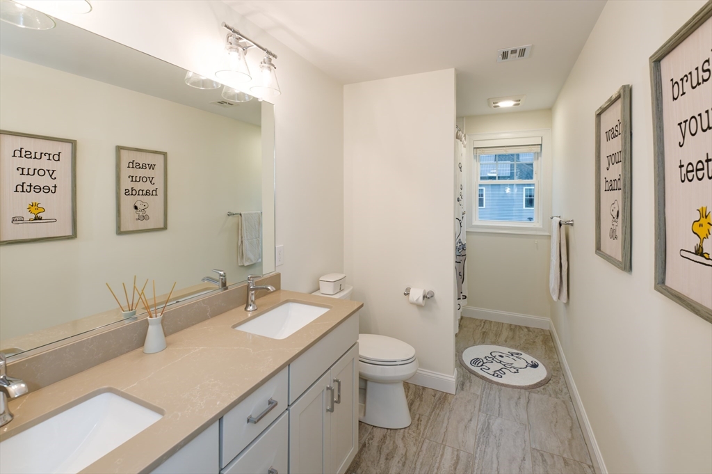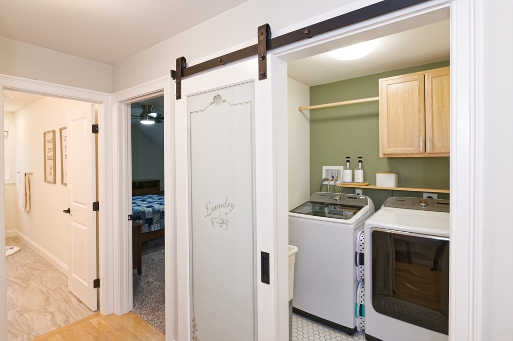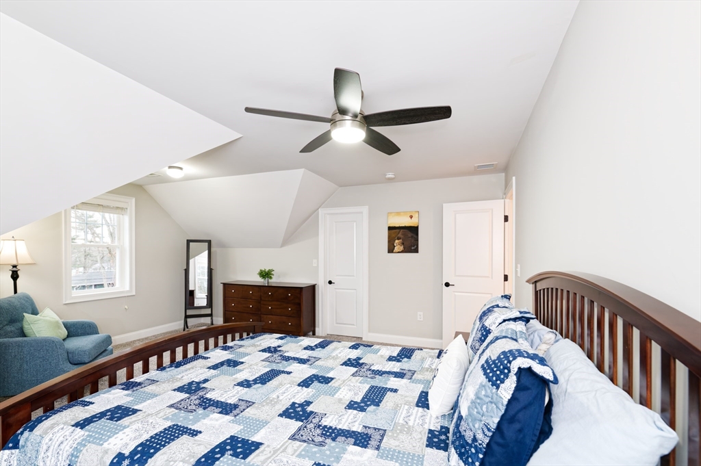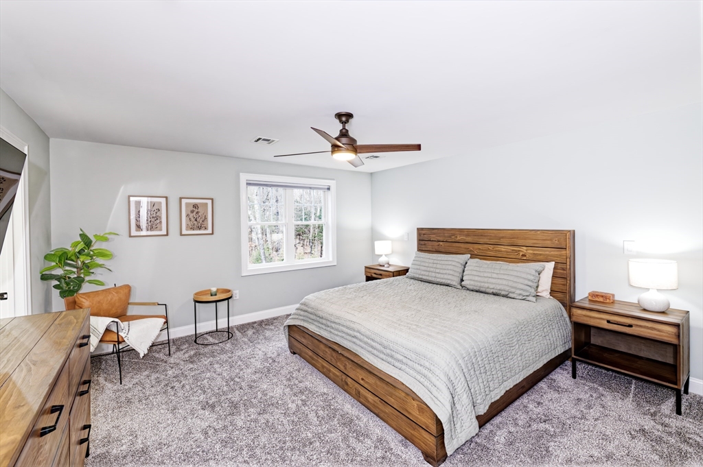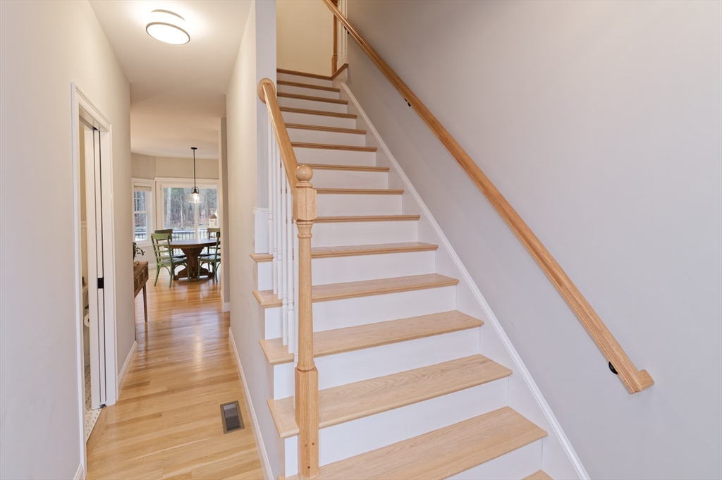 Almost-new construction set on 1.35 acres of flat, beautifully landscaped grounds, offering the outdoor space and privacy buyers seek. The vaulted living room features a striking marble fireplace and flows into a chef’s kitchen with quartz countertops, a large island, and custom backsplash. The dining area includes built-in wine cooler and bar, and sunlit sitting area ideal for entertaining. Upstairs, a spacious primary suite with a custom California Closet and three additional bedrooms showcase designer lighting and curated window treatments. Primary bath offers a tiled shower, dual sinks, and counter space. Owned solar panels provide efficiency and no electric bills.The expansive backyard features a large deck and patio with firepit, designer shed, and play area, with wooded land beyond for recreation and exploration. Conveniently located near Stoddard Park, this home offers a rare blend of luxury, land, and efficiency. Open house Saturday and Sunday. Showings start Friday