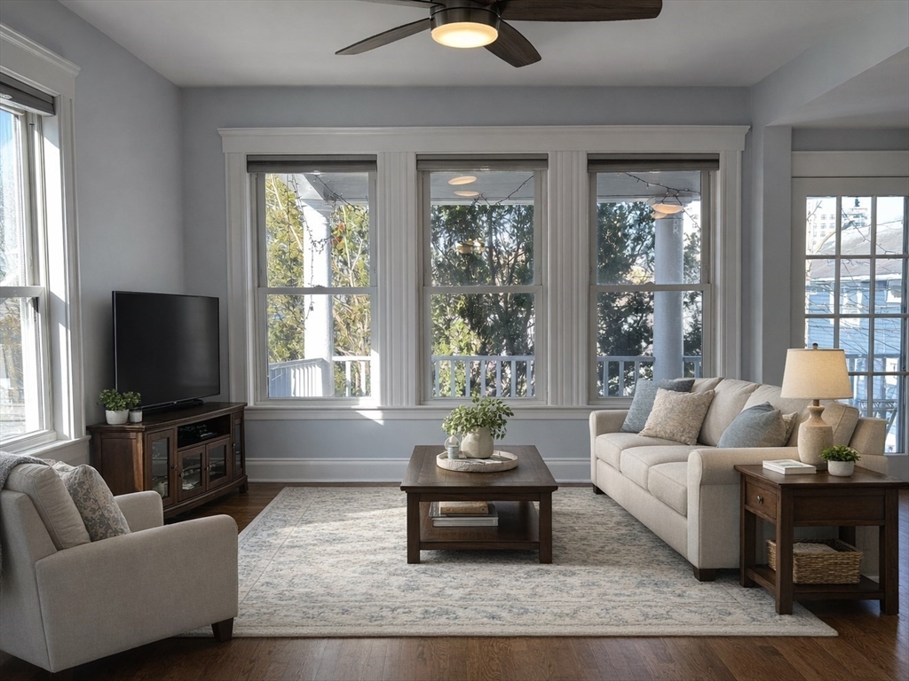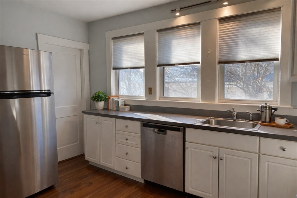 Spacious, sun-filled 3-bedroom home in a prime Somerville setting between Davis Square & Teele Square. Located on an upper level, the unit features an oversized kitchen with stainless steel appliances, white cabinetry, gas cooking & a butcher-block island. A walk-in pantry doubles as an office with a built-in desk. The dining room, with an elegant hutch, opens to the large living room, which features a wall of windows. Outdoor space includes a front porch, in addition to a rear deck overlooking a shared backyard. Bedrooms are nicely sized & the bath includes a soaking tub with a shower. Additional highlights include hardwood floors, ceiling fans, deeded storage, complimentary laundry in the building, abundant natural light & snow removal. Convenient to restaurants, shops, the Red Line, Tufts, the Somerville bike path & major commuting routes. Landlord pays broker fee. Ample street parking. Non-smoking building. Applicants must demonstrate a strong credit history & provide references.
