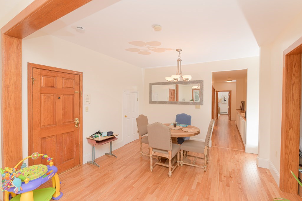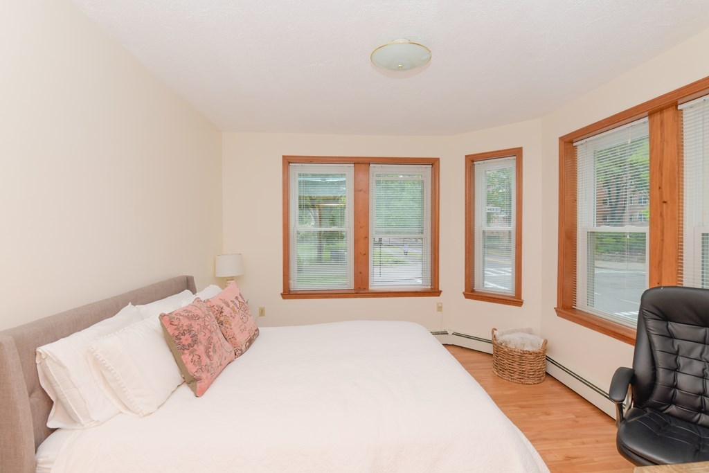 With views of Knyvet Park, a short distance from Minot Park, Amory Park and Halls Pond, this stately 3+ bed over-sized unit is a gem! Recently renovated, this high first floor unit has an open and versatile floor plan. You enter into a large entry foyer which opens up into formal living and dining areas. There is a den/family room area with corner exposures off the living room that can be used as a guest bedroom/office based on your needs. The beautiful and renovated eat in kitchen has stainless steel appliances, stone counters and extensive cabinet storage and views of Knyvet Park. Separated from the entertaining spaces for privacy, the bedrooms are located down a hallway with a large bank of cabinets for storage. The bedrooms are beautifully proportioned - there are two bedrooms, a family bathroom and a primary bedroom with an en-suite bath. In-unit laundry and one parking space included. Close proximity to both the C and B Green lines and to shops, restaurants.
