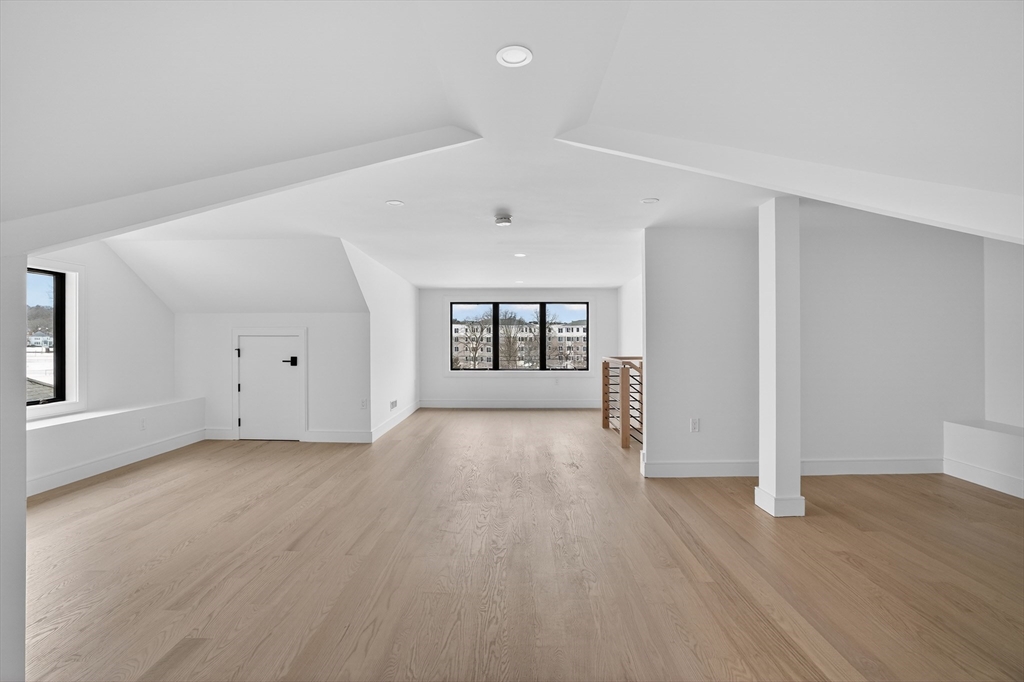 This craftsman style new construction townhome is located close proximity to Cabot School. Upon entering, you’ll find a coat closet and designer powder room with brushed brass accents. The open concept 1st floor offers many stunning features like a chef's kitchen featuring high-end appliances and gorgeous modern cabinets. The living room features a linear fireplace with wood slat wall detail accent and floating bench. There are 3 bedrooms on the 2nd level, including the primary suite with its very own walk-in closet and a gorgeous spa-like ensuite bathroom with soaking tub and walnut custom cabinetry. A full bathroom and laundry complete this level. The fully finished 3rd floor gives you bonus space with large windows. The lower level is the perfect place to turn into a gym, movie room, or playroom, and has a private bedroom with a full bathroom perfect for your guests or an office. Conveniently located in close proximity to Newtonville Village Center, the commuter rail, and 90/95.