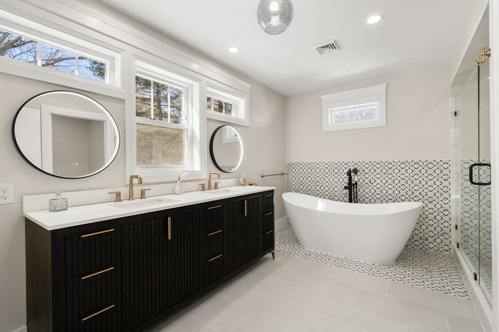 NEW CONSTRUCTION! Top-tier living minutes from shopping, dining, highways, and the commuter rail. Set on a scenic road near Dover town center this stunning home offers over 4,000 sq ft of beautifully finished space with high end designer finishes. The open concept main level features a gracious living room highlighted by a stone fireplace, sun-filled dining area, and a chef’s kitchen with a large island and walk-in pantry. Additional highlights include a marble half bath, office area, and mudroom with abundant storage. A dramatic two-story foyer leads to the second level, with a luxe primary with spa bath with double vanity, soaking tub and oversized shower, huge dressing closet, private deck, two more generously sized bedrooms each with ensuite baths, laundry room and a home office or bedroom. The finished lower level offers flexible space for playroom, fitness, theater or guests. Excellent outdoor space, and thoughtful details throughout make this exceptional home truly stand out.